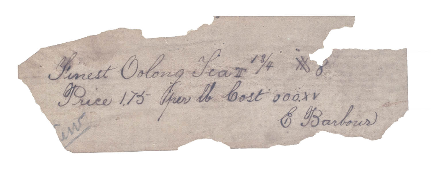 Tea box with original paper label, “Finest Oolong, Price $1.75 per lb…”, and a two-section Chinese tea box, with burl wood exterior; Storage box with original red paint and blue interior.