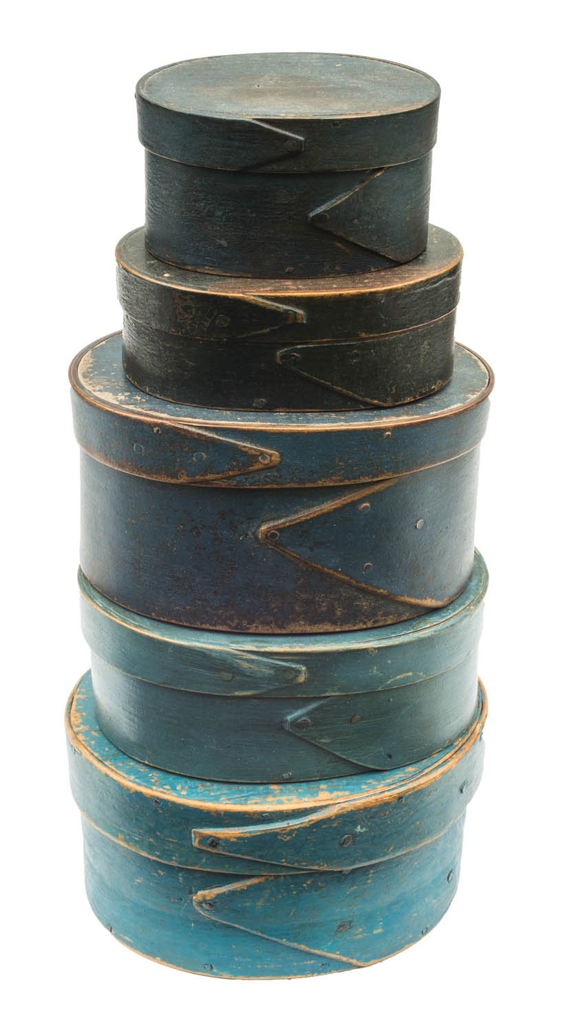 In original shades of blue painted finish, 1 3/4″ h, 3 3/8″ l to 3″ h, 5 1/2″ l.