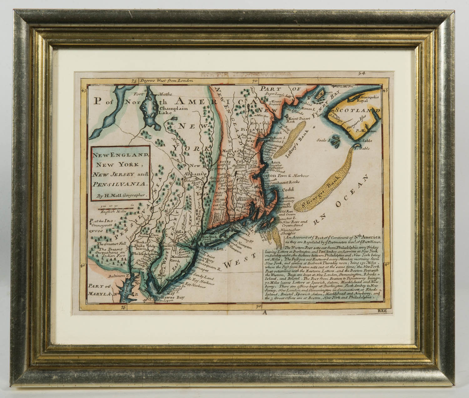 Map of New England, New York, New Jersey, and Pennsylvania, c. 1715, by H. Moll (1678-1732).