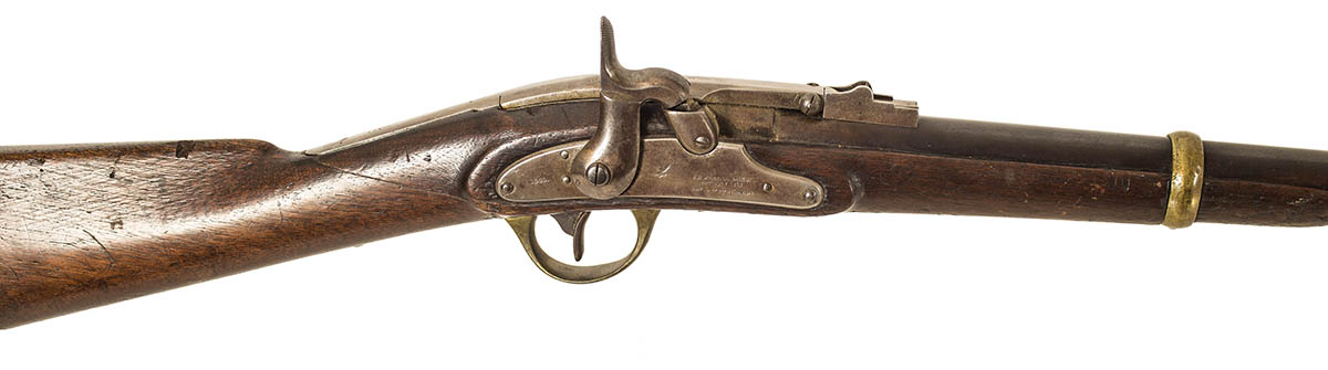 “J.H. Merrill, Balto., Pat. July 1858”, “eagle, 1863, Apl 9 May 21-28-61”, Serial l #14100, stamped marks “V, P, F, 6, 56 (and two others)”, with wear, broken wrist and repaired, 37″ l.
