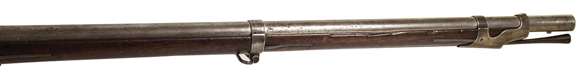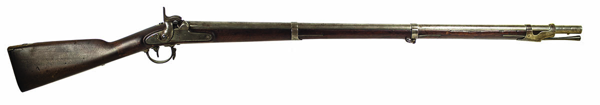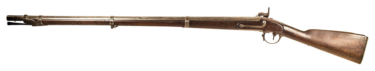 “Harpers Ferry, 1849, (eagle and shield), US”, model 42, stamped marks “V, P, 185, US, 35″, bayonet lug repaired, 39″ barrel, 55” l.