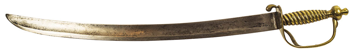 Mid 18th c. sword, with a brass hilt and wear, 28″ l.