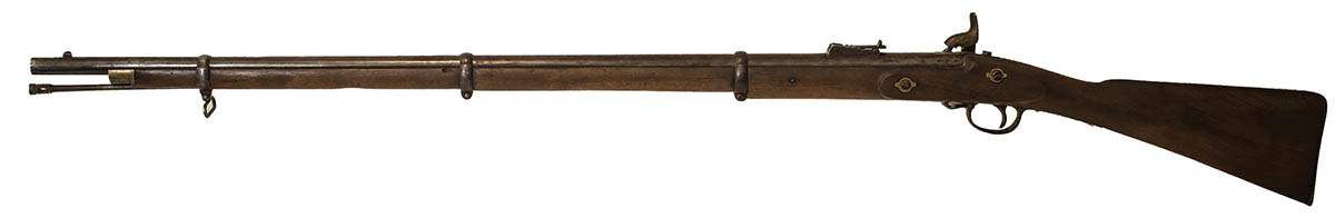 “Parker Field & Sons, London”, a few stamps in barrel, “f.s.” carved in stock, large chip in stock behind barrel, with wear, many replaced parts, 55 1/4″ l.