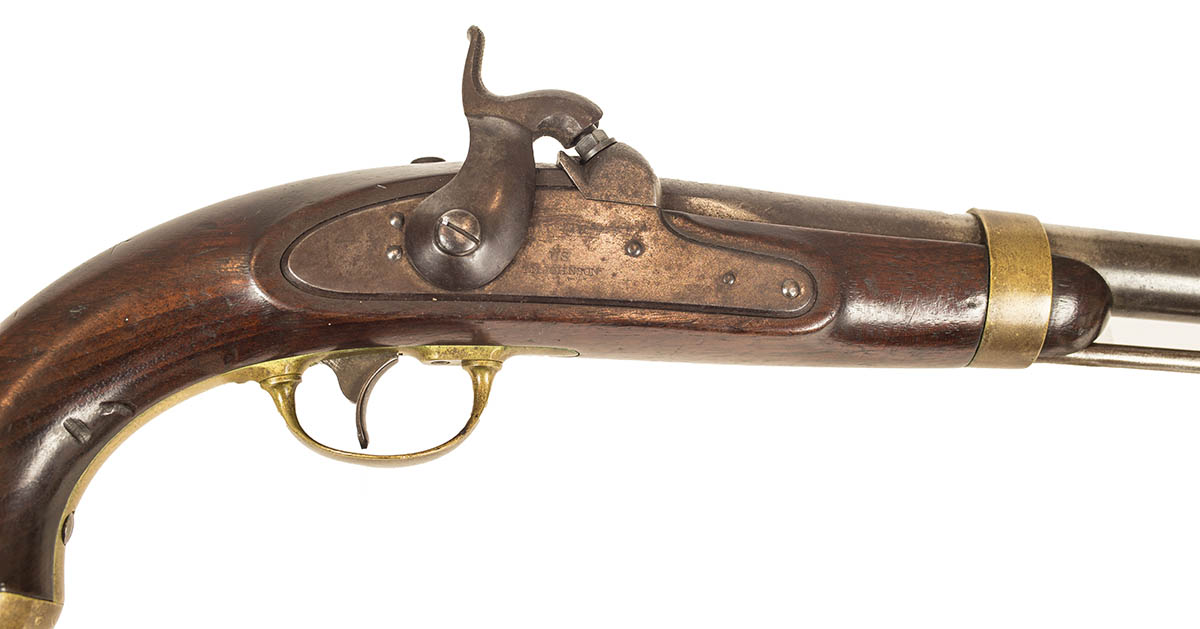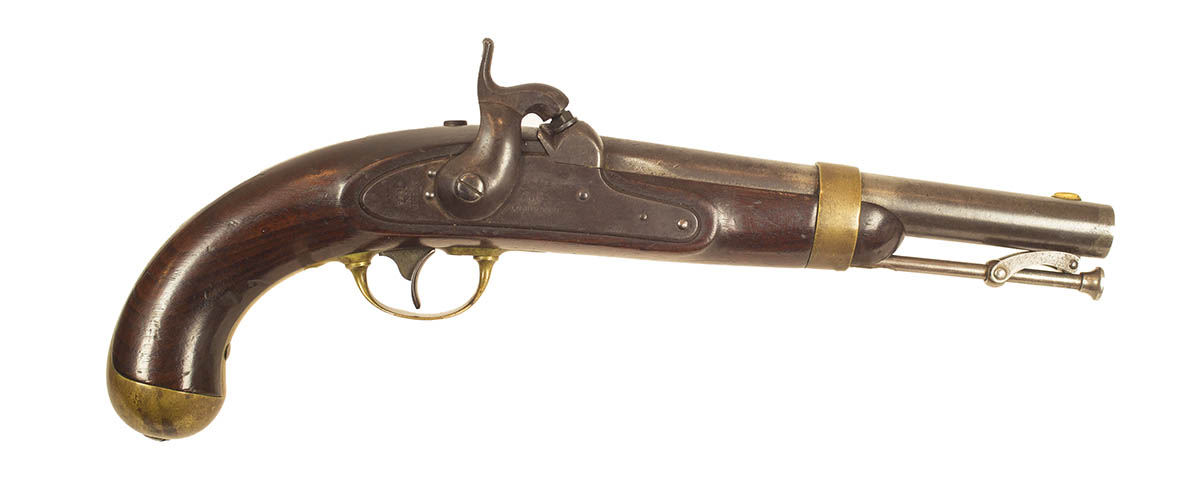 U.S. Contract, single shot percussion pistol, model 1842, marked “H. Aston” with “US Middletown Ct. 1847”, stamped “JH” and a “P” inspector’s stamp, c. 1851-1852, good condition, 15″ l.
