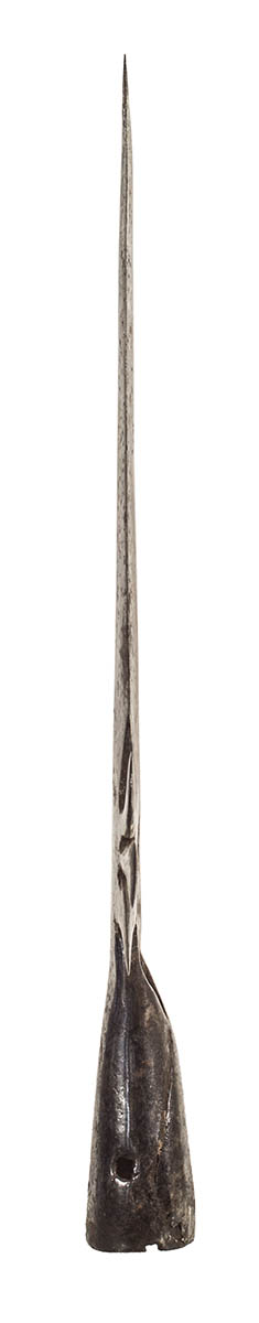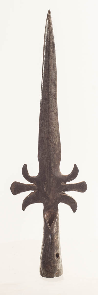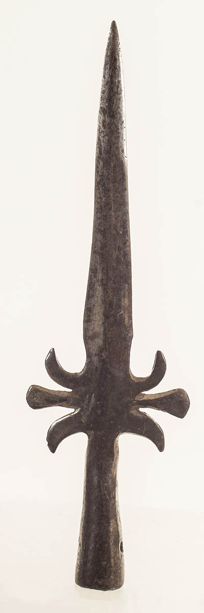 Hudson River area, hand forged, (note: early American colonists, Revolutionary War era, British non-commissioned officers, and American Junior officers were often armed with a pike, spontoon or halberd), no shaft, 12 1/2″ l.
