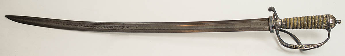 Silver hilt, and sharkskin grip, hilt displays engraved detail, 30 1/4″ l.