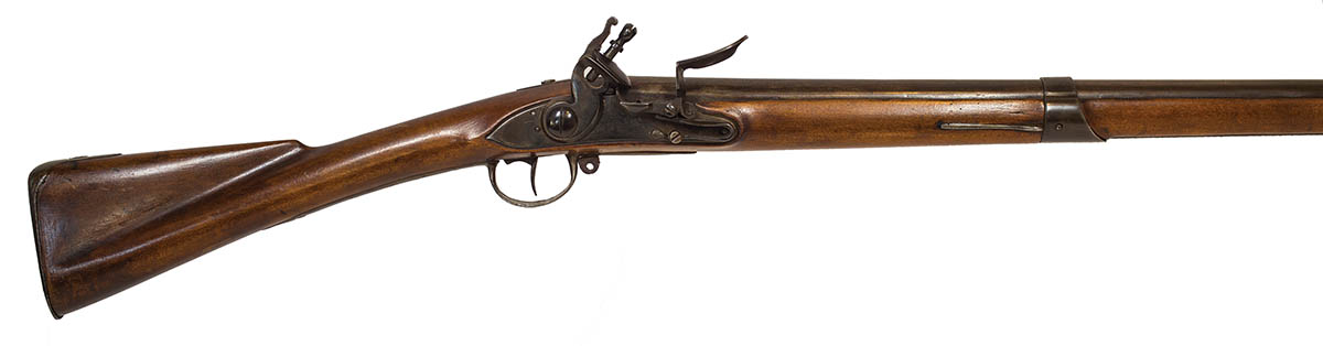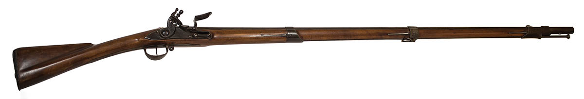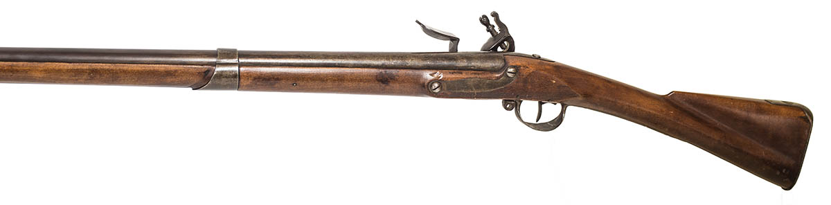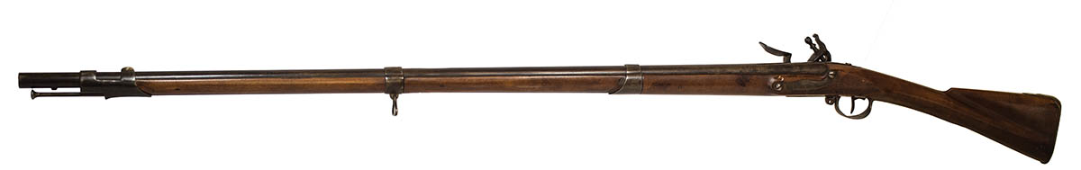 Charleville style flintlock rifle, age undetermined, with light wear, heavily worked, possibly not antique, 60″ l.