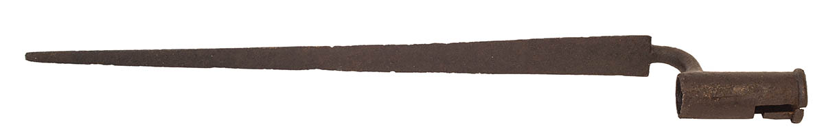 Battlefield relic from the Revolutionary War, with heavy wear, “found in an old farmhouse in Waloomsac, NY, 1952″, (note: Waloomsac, NY is 10 miles from Bennington, VT, and is the actual site of the 1777 Battle of Bennington), rusted, broken socket, (possibly American made), 18 3/4” l.
