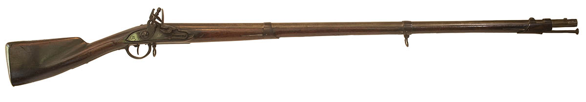 French surcharged, engraved “US” on lock plate, “eagle head, P” inspector’s stamps in barrel, with minor wear, unmarked lock, original reconditioned touch hole, 59 3/4″ l.