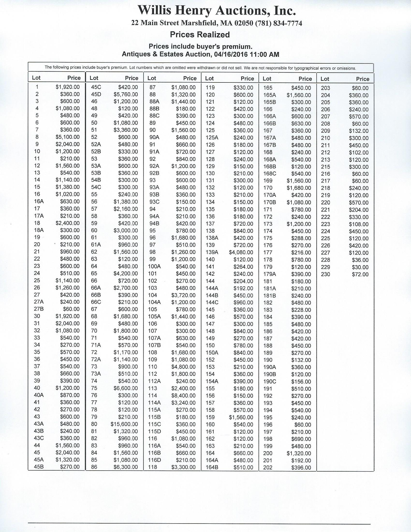 Prices Realized – with buyer’s premium