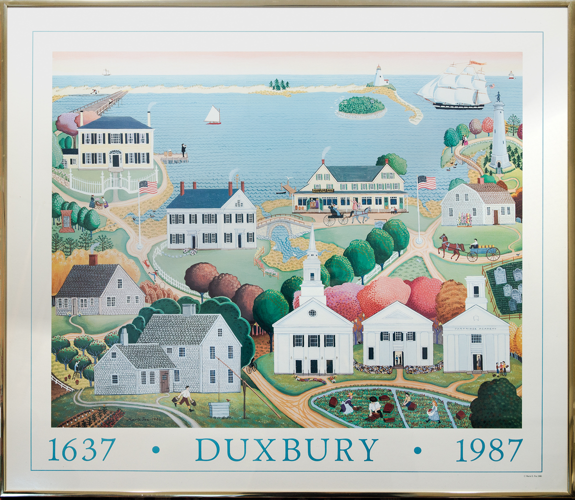 “Duxbury”, designed by David Anders Tilden, 27″ x 21″; “Duxbury”, 1637-1987, Marie E. Fox, 1986, 25 1/2″ x 30″; and “I Pledge to Make the Earth a Secure and Hospitable Home for Present and Future Generations, Earth Summit ’92, Rio de Janeiro…”, Robert Rauschenberg Foundation, 25 1/2″ x 25 1/2″ (sight); (ex. Connors estate, Duxbury, MA).