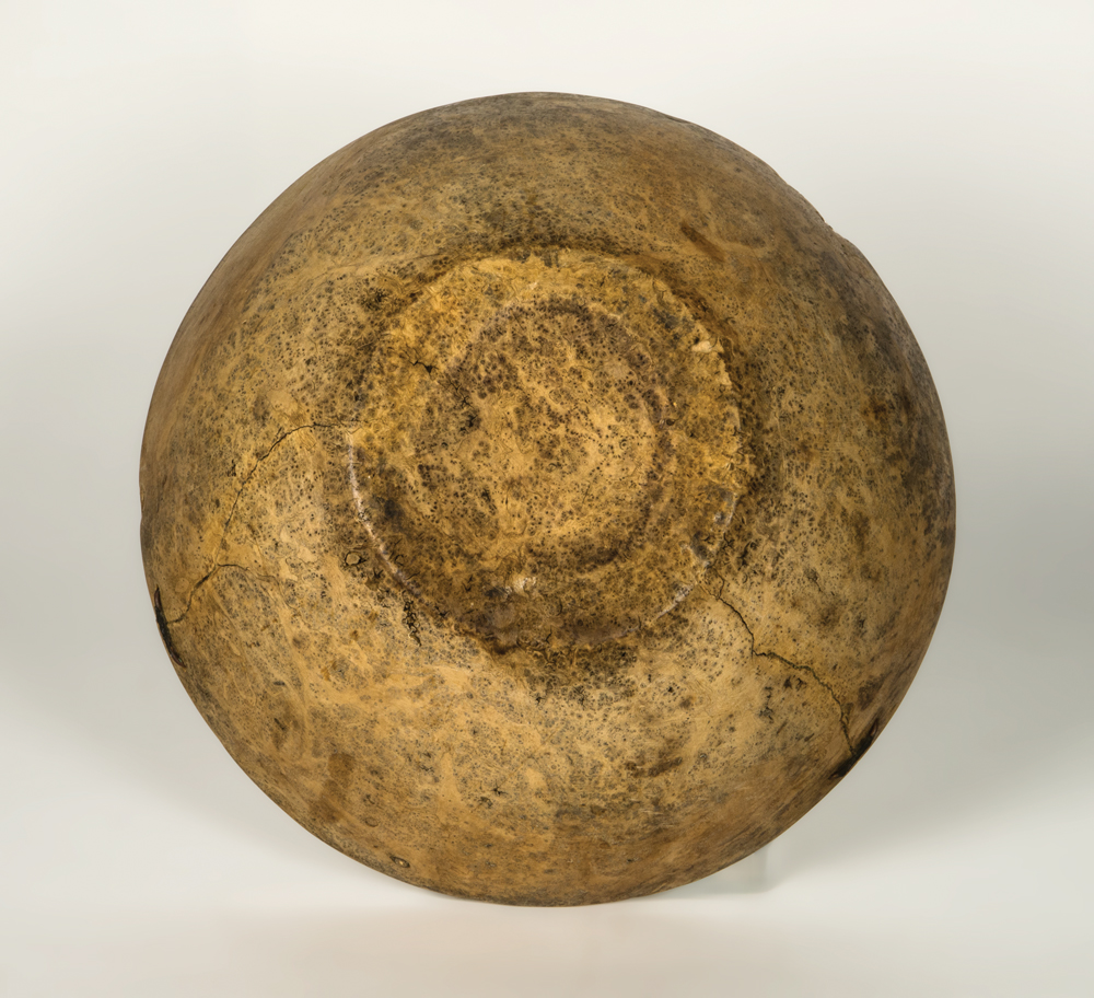 Two splits with early iron staple repairs, 5″ h, 15″ dia.