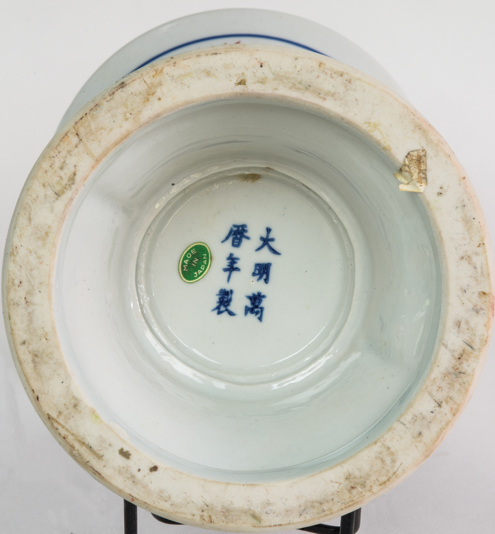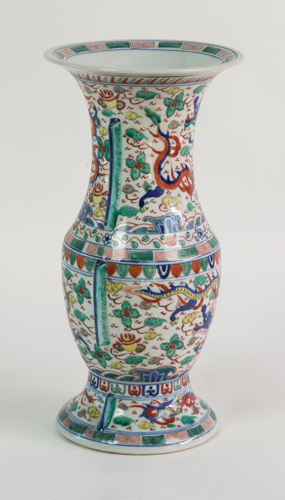 Depicting four-claw dragon in the Chinese style, blues and reds, 14 1/2″ h.