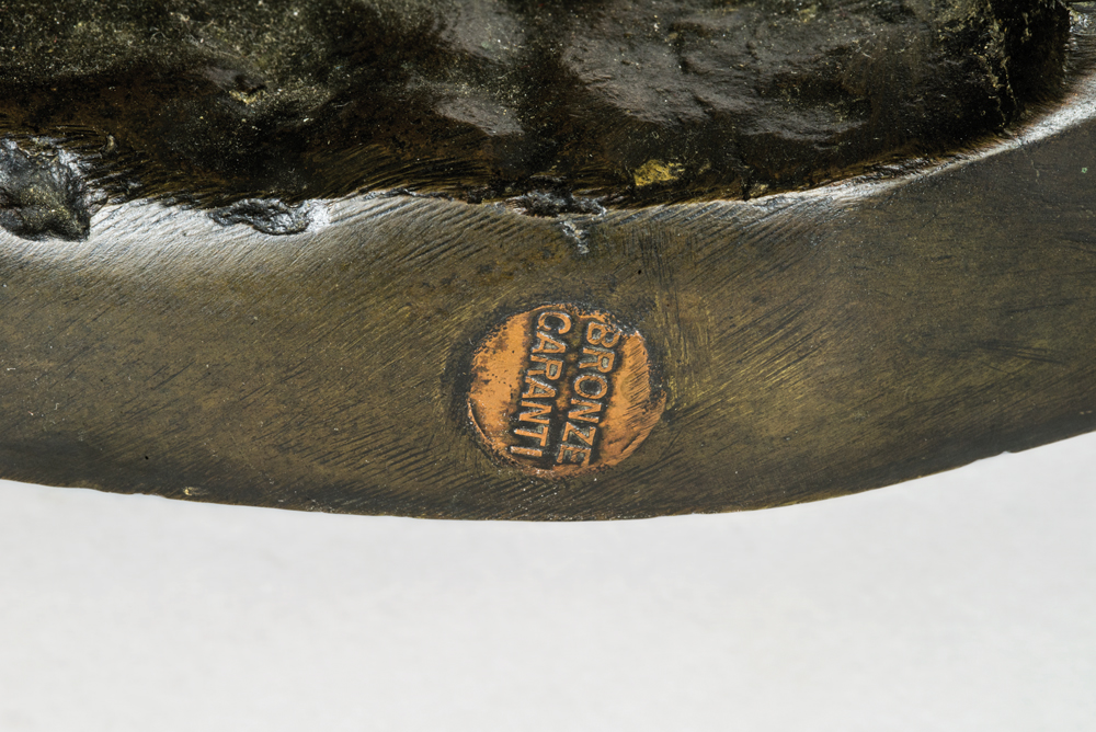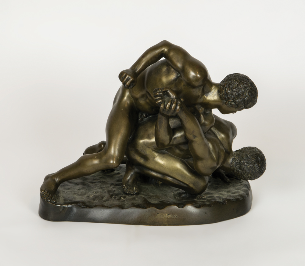 Statue of Greek wrestlers, stamped “Canova” on side of base, and “Bronze Caranti” in a circle, after Antonio Canova (Italian, 1757-1822), 9″ h, 12″ l.