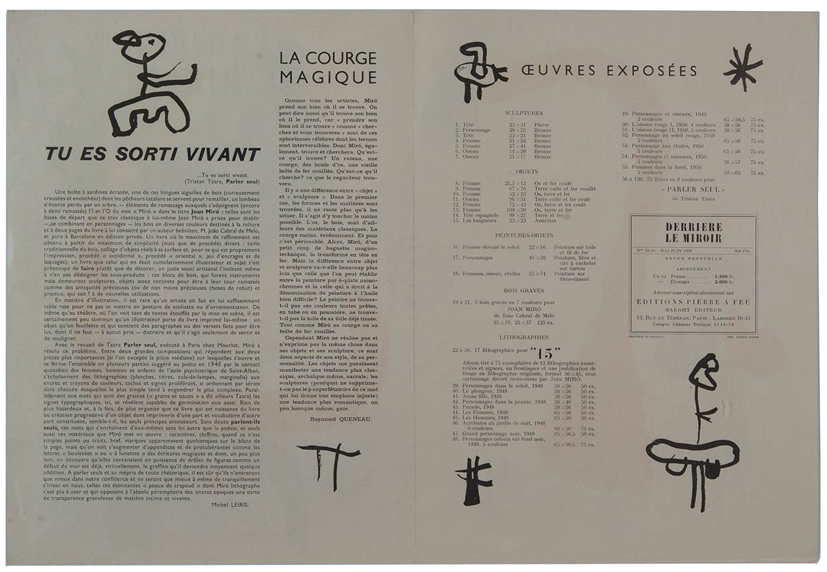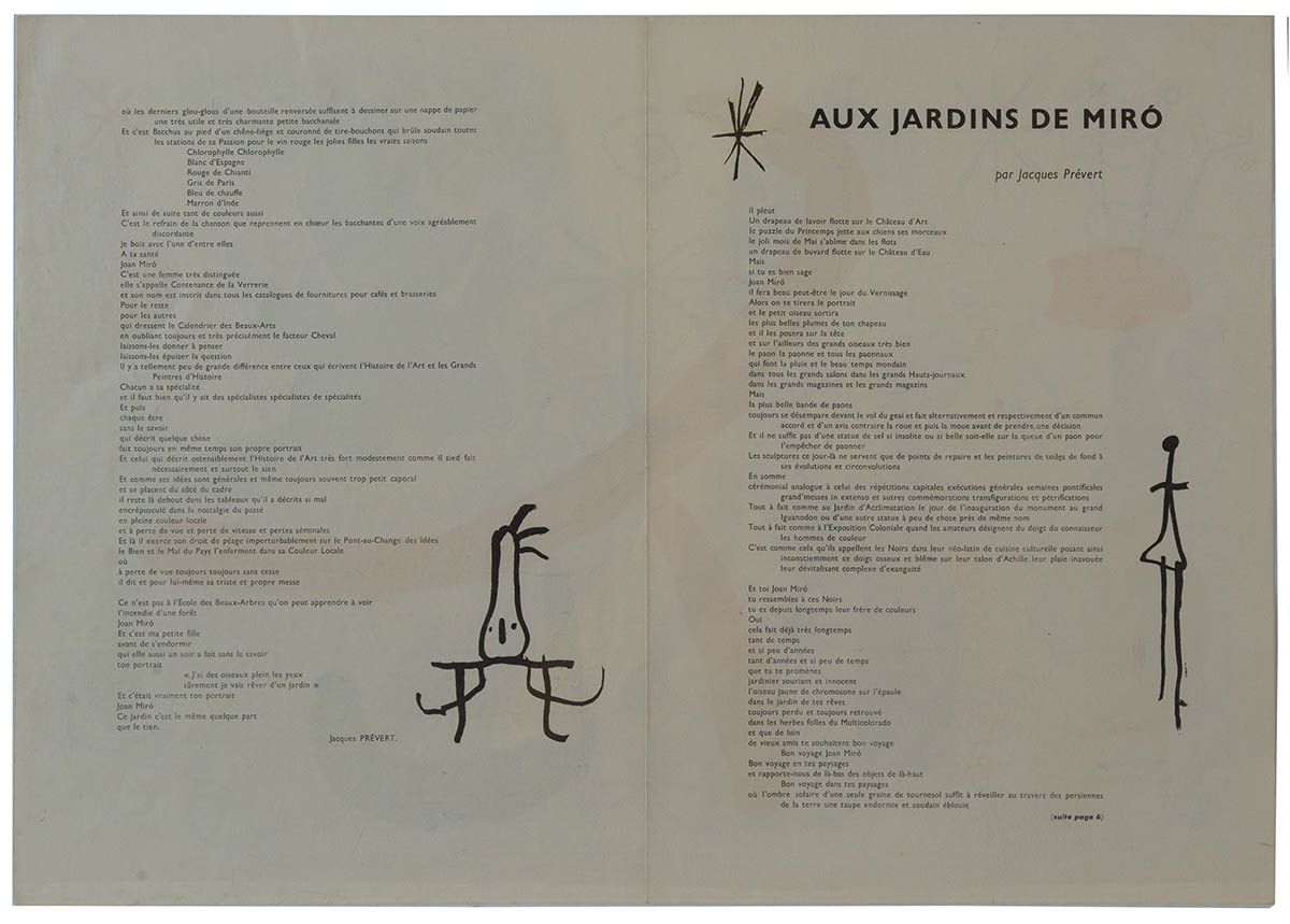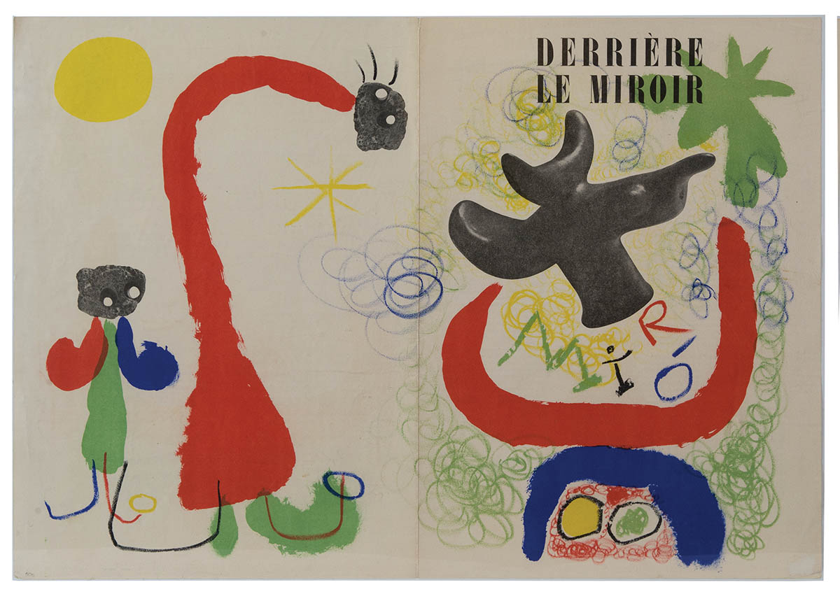 From Miro exhibitions, “Aux Jardins de Miro, Jacque Prevert.” and “Derriere Le Miroir” (Behind the Mirror), double sided, 15 1/4″ x 22 1/4″.