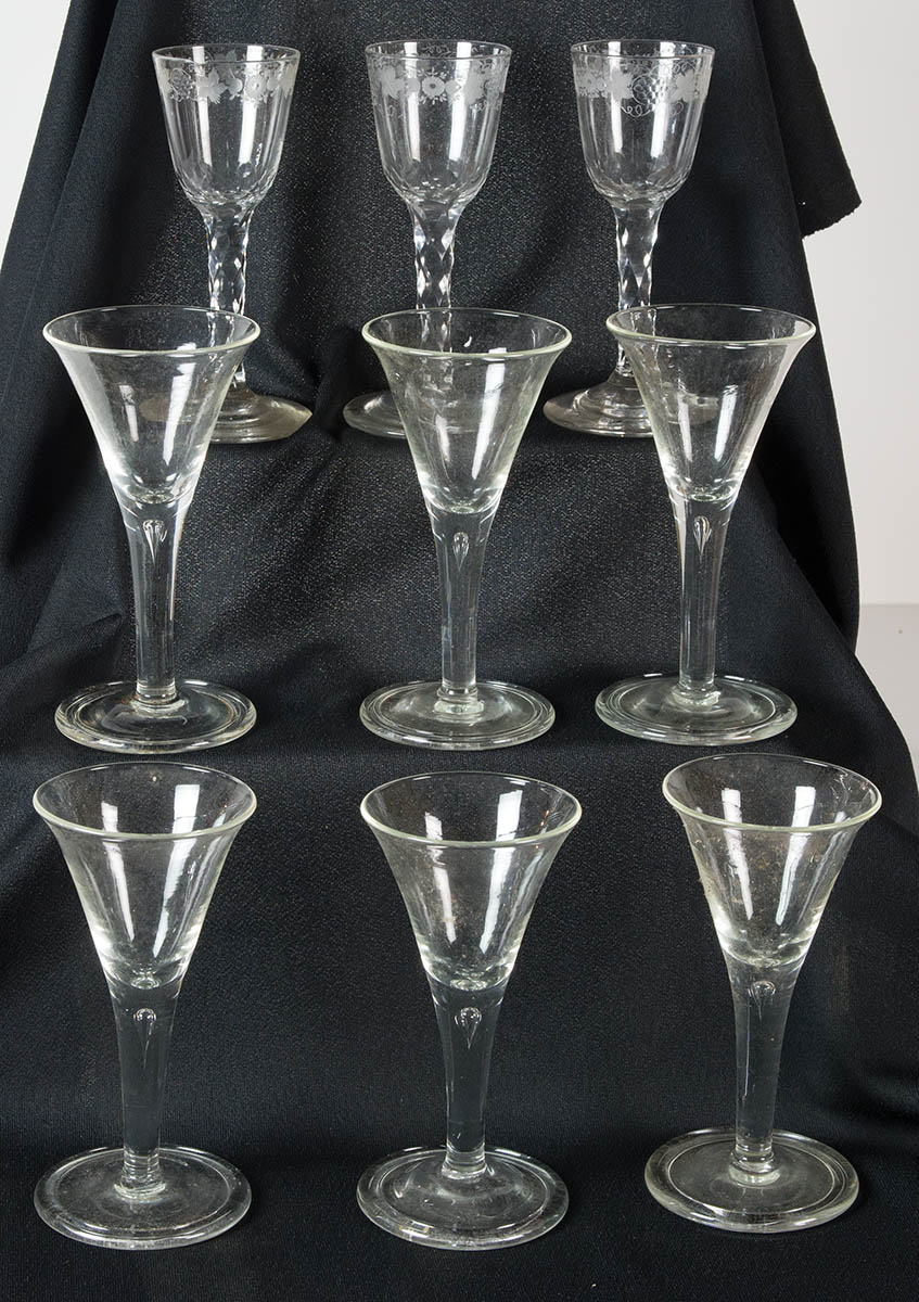 Ten 18th/19th c. wines, all approximately 7″ h, all in good condition, (note: nine are pictured).
