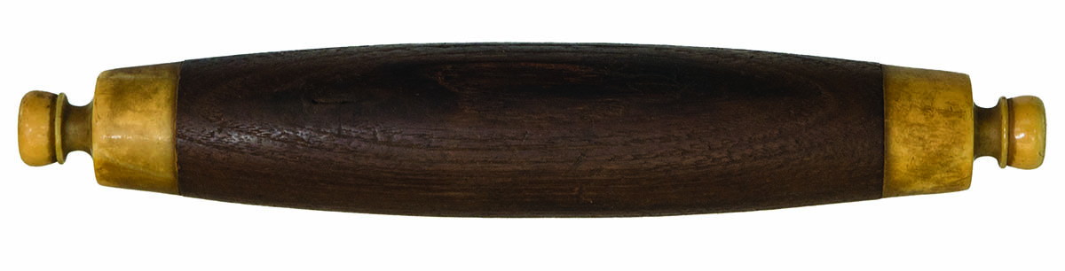 Turned walnut with finely turned whale bone handles, tapered ends, from a Duxbury, Mass. home, 12″ l.