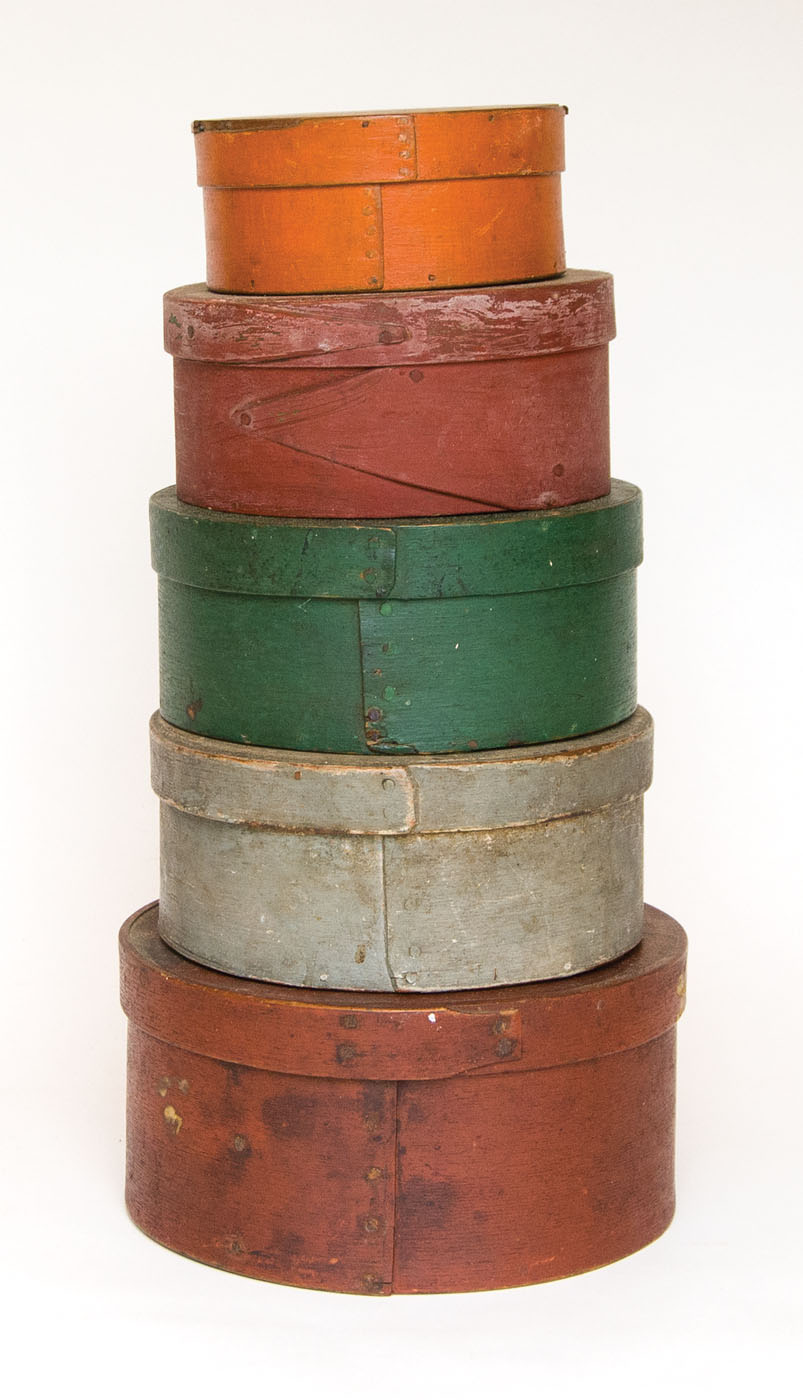 Original painted finishes, orange, red, green, gray, and dark red, 4 3/4″ to 7 1/4″ dia, (ex. Curry collection).