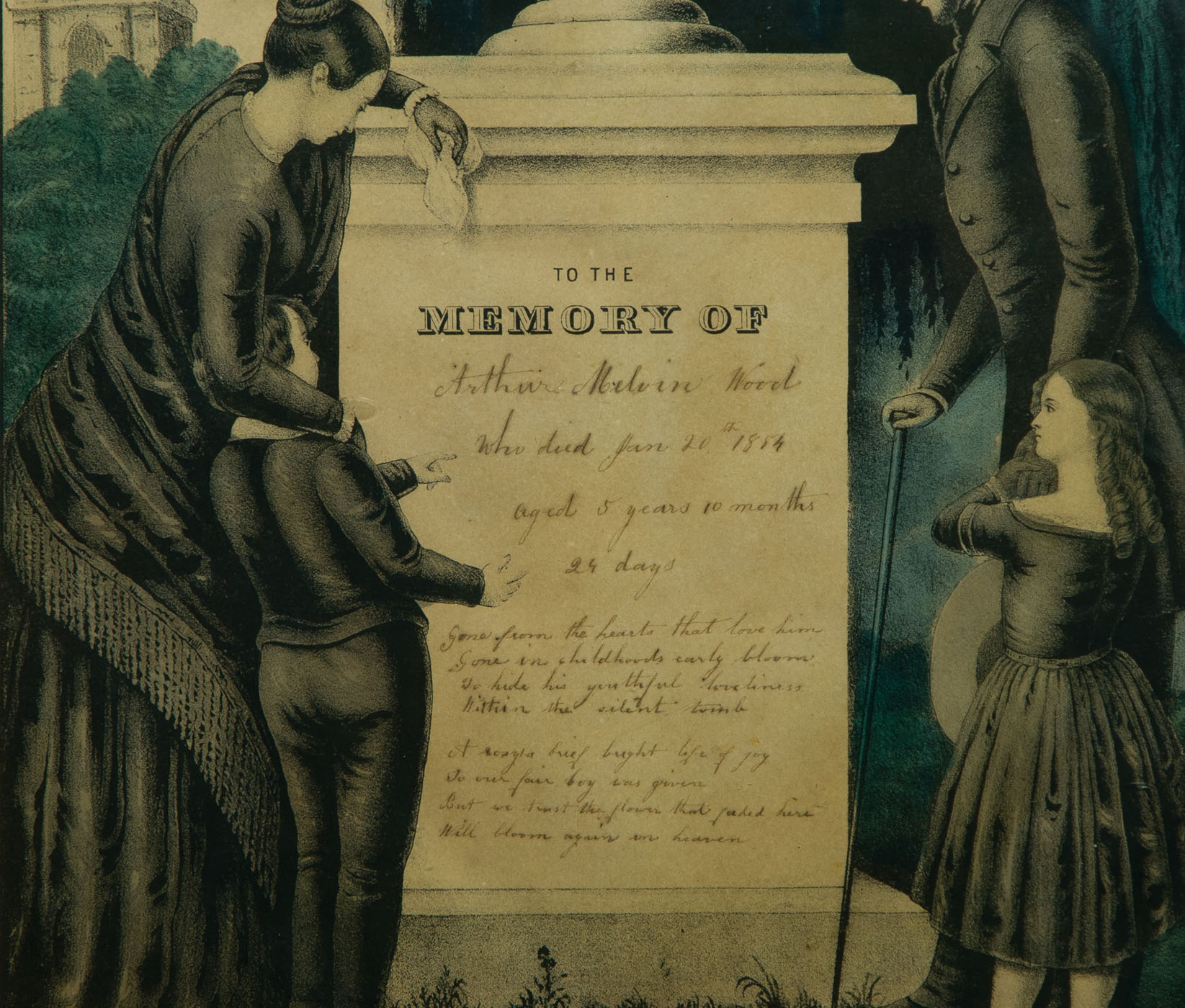 Lot 158A: 19th C. Watercolor Lithograph Memorials