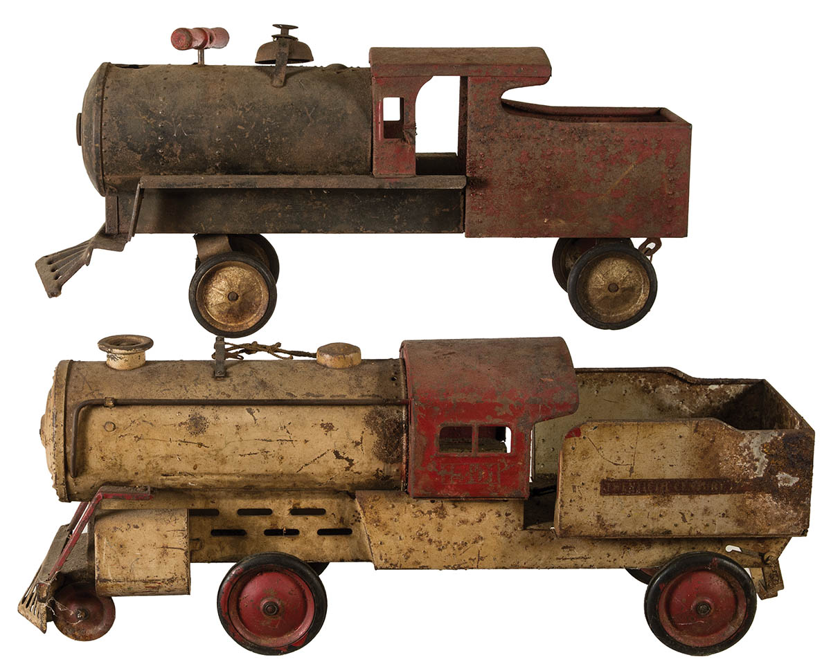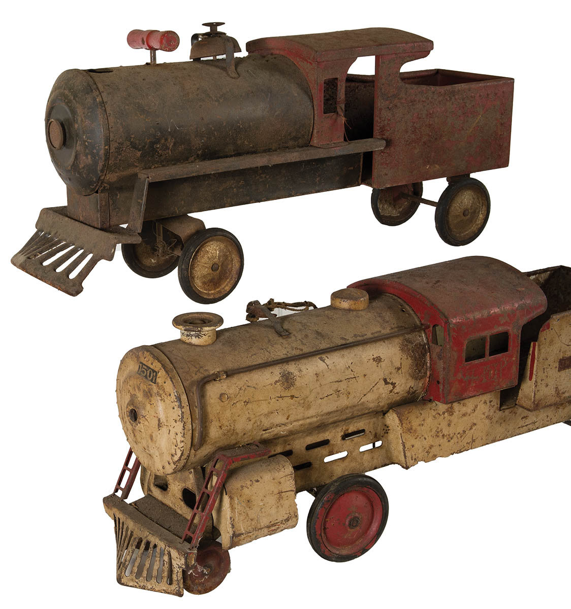 “Twentieth Century”, rubber wheels, (as found condition in attic), 25″ and 28″ l.