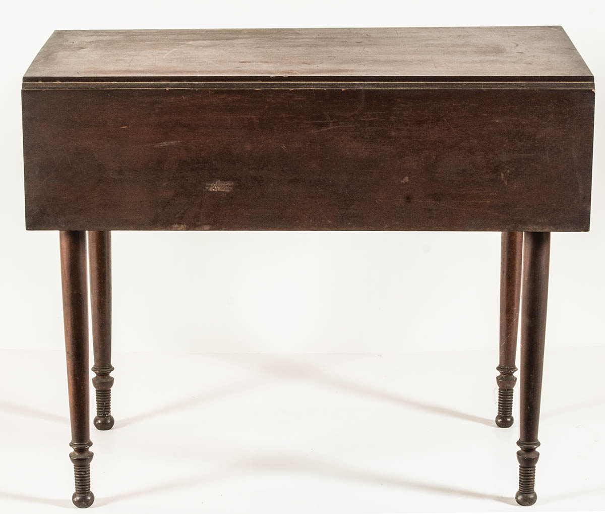 Cherry, Pembroke style, turned and tapered legs, original finish, butterfly leaf supports, 28″ h, 34 1/2″ l, 18″ w (top).