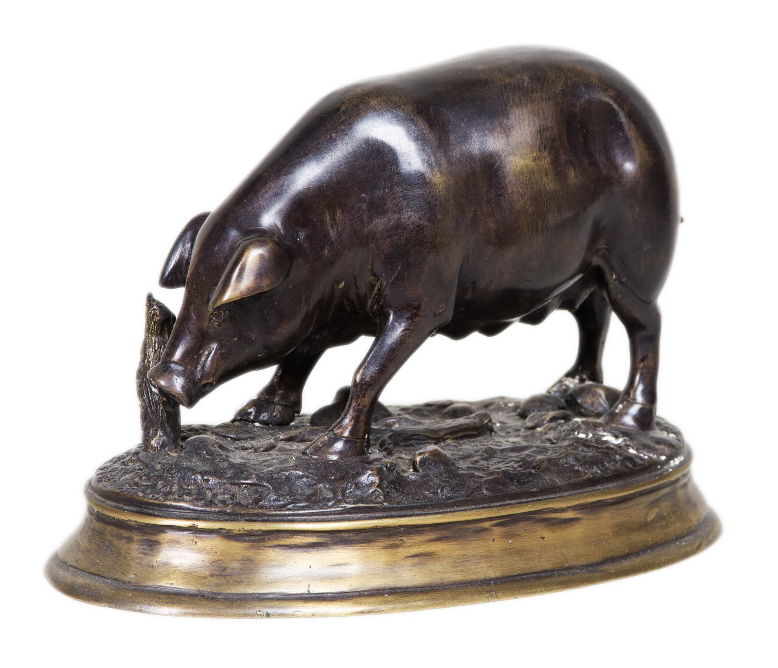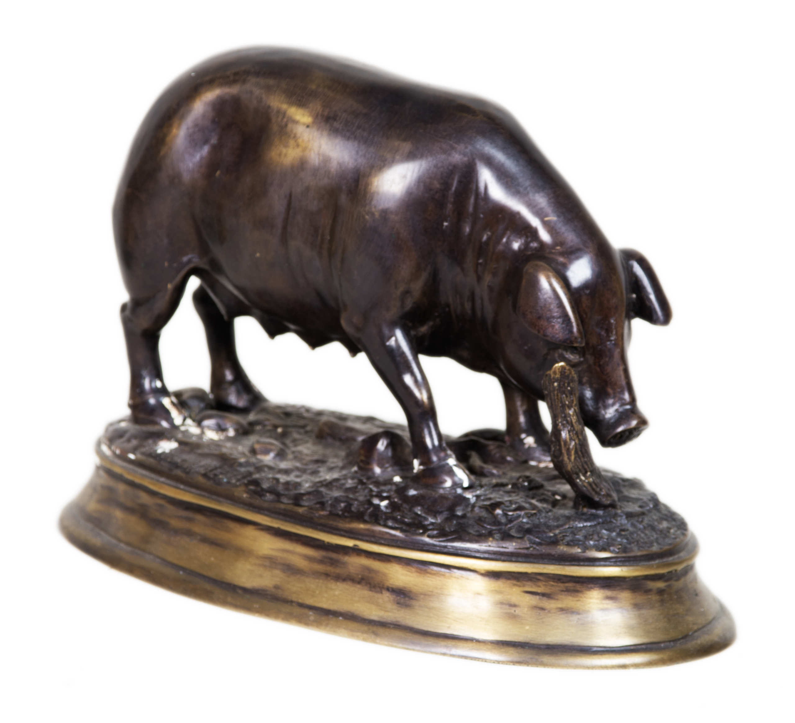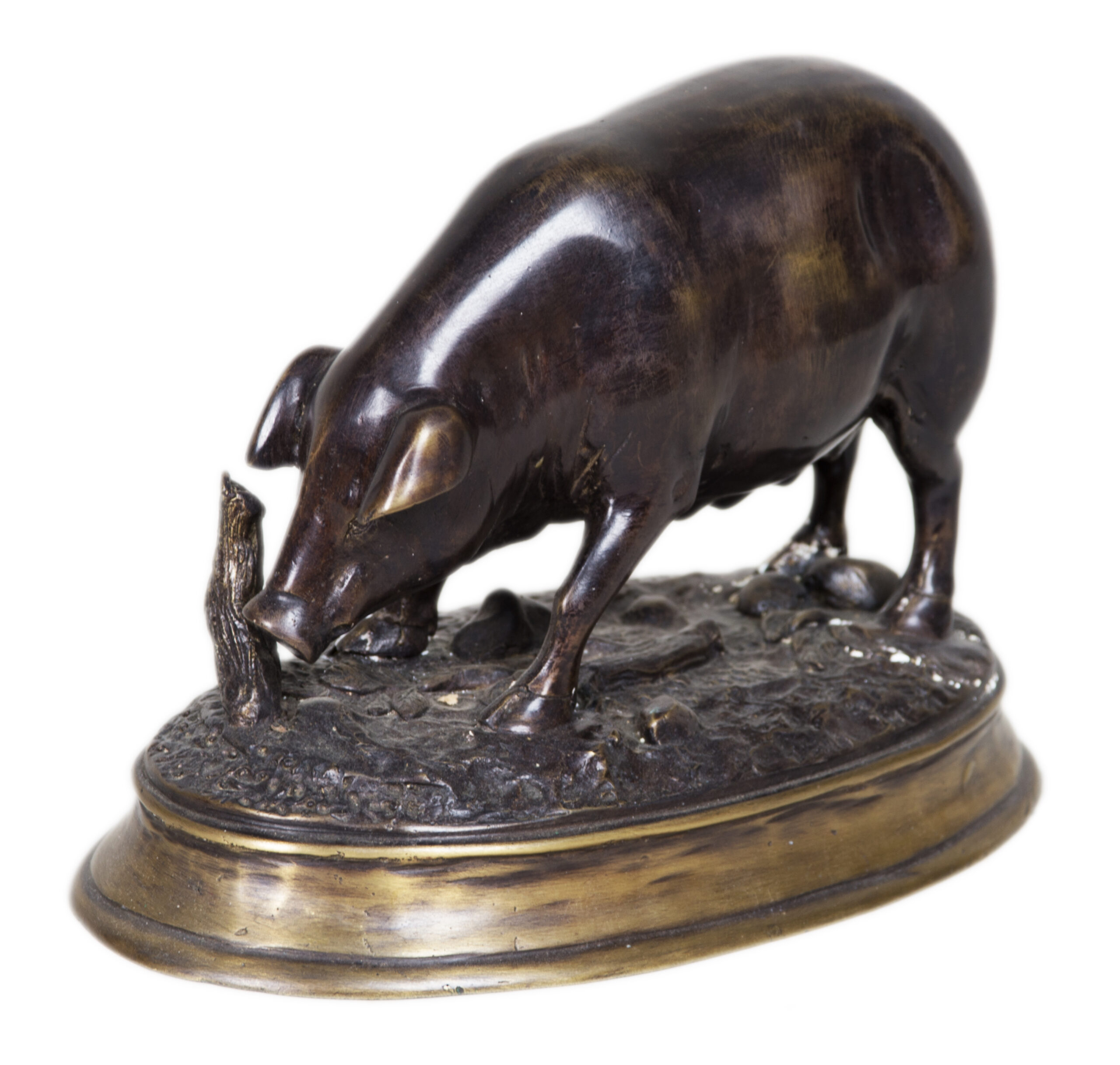 Bronze by Paul Edward Delabrierre, (French, 1829-1912), inscribed signature, 8″ h, 9 1/2″ l, 6″ w.