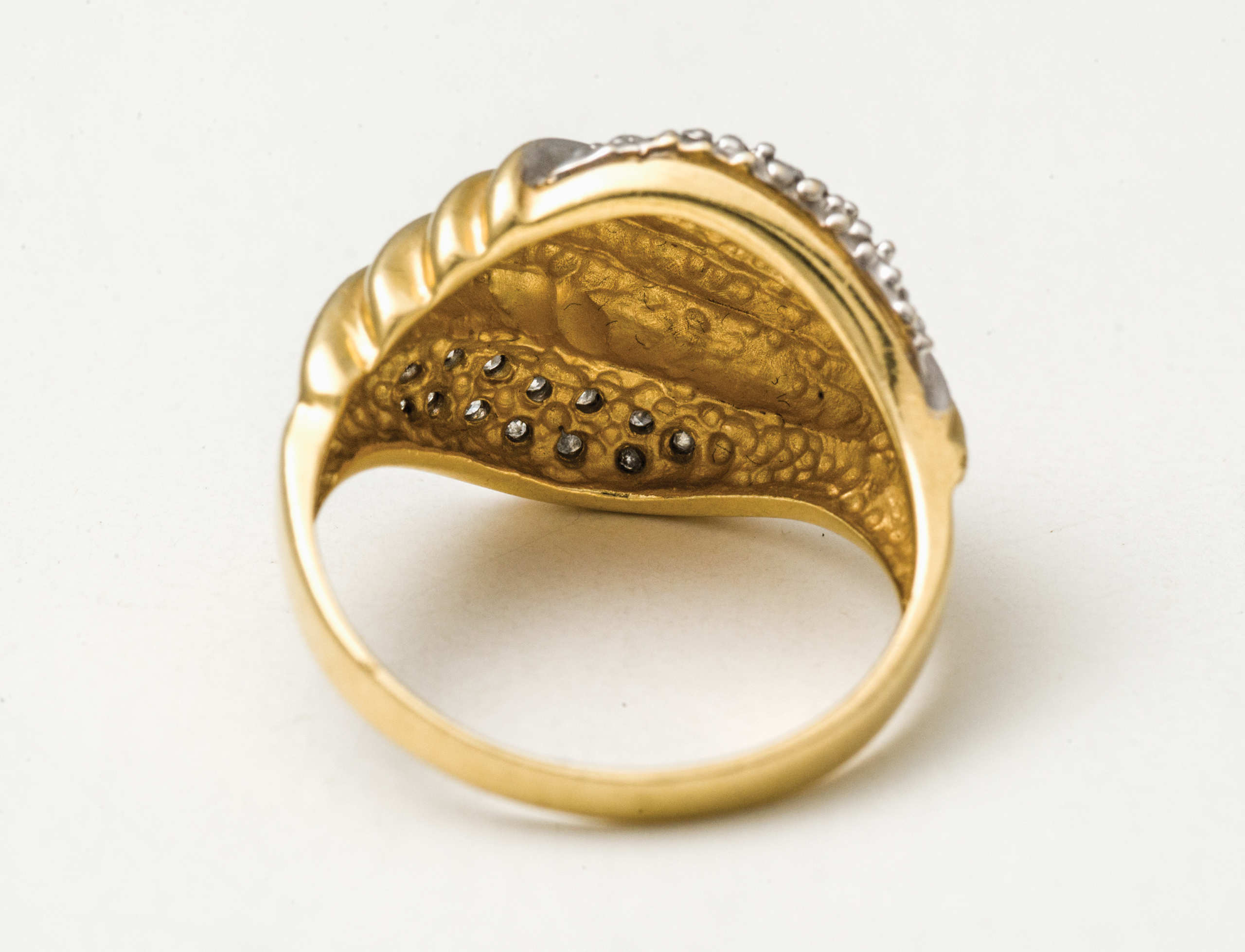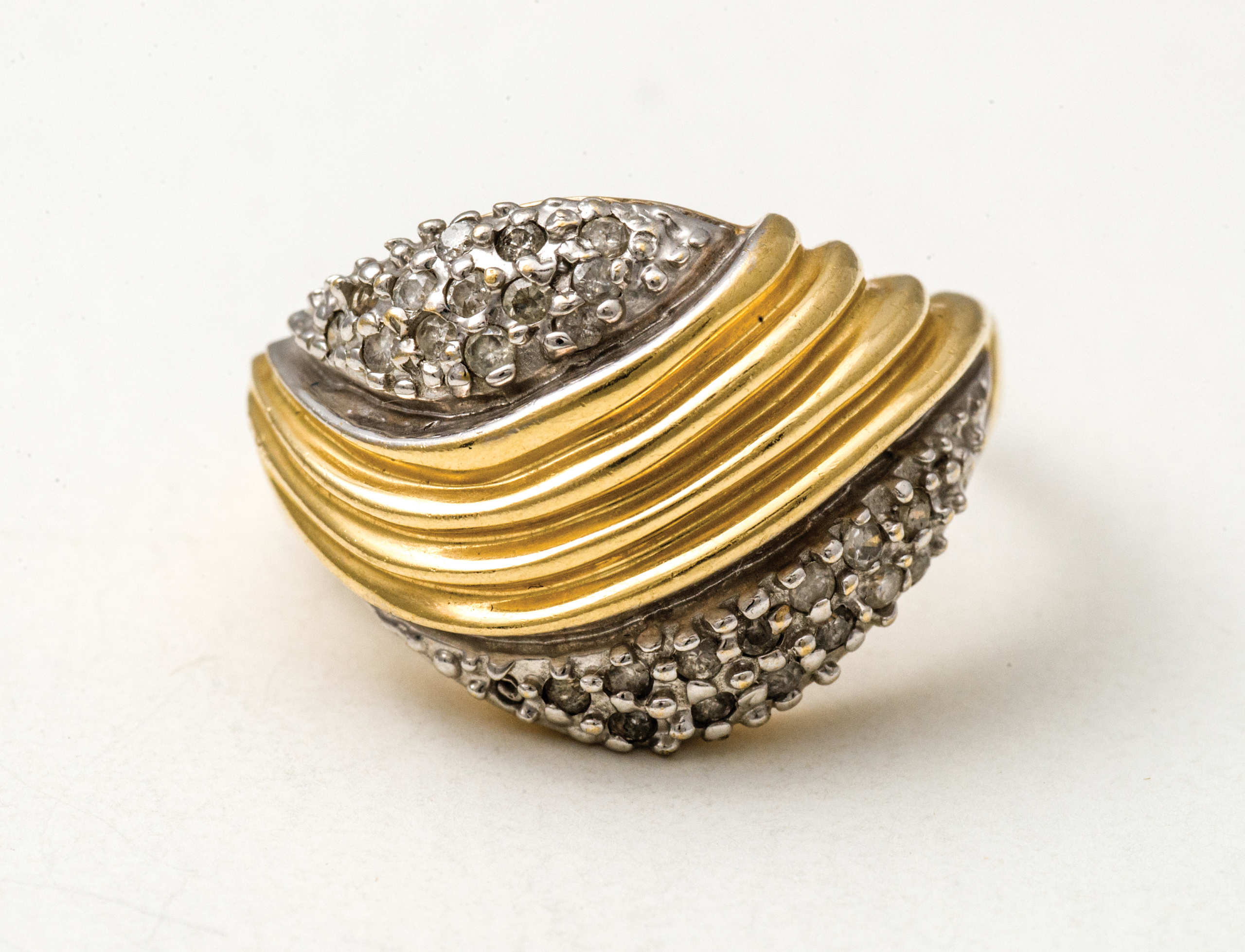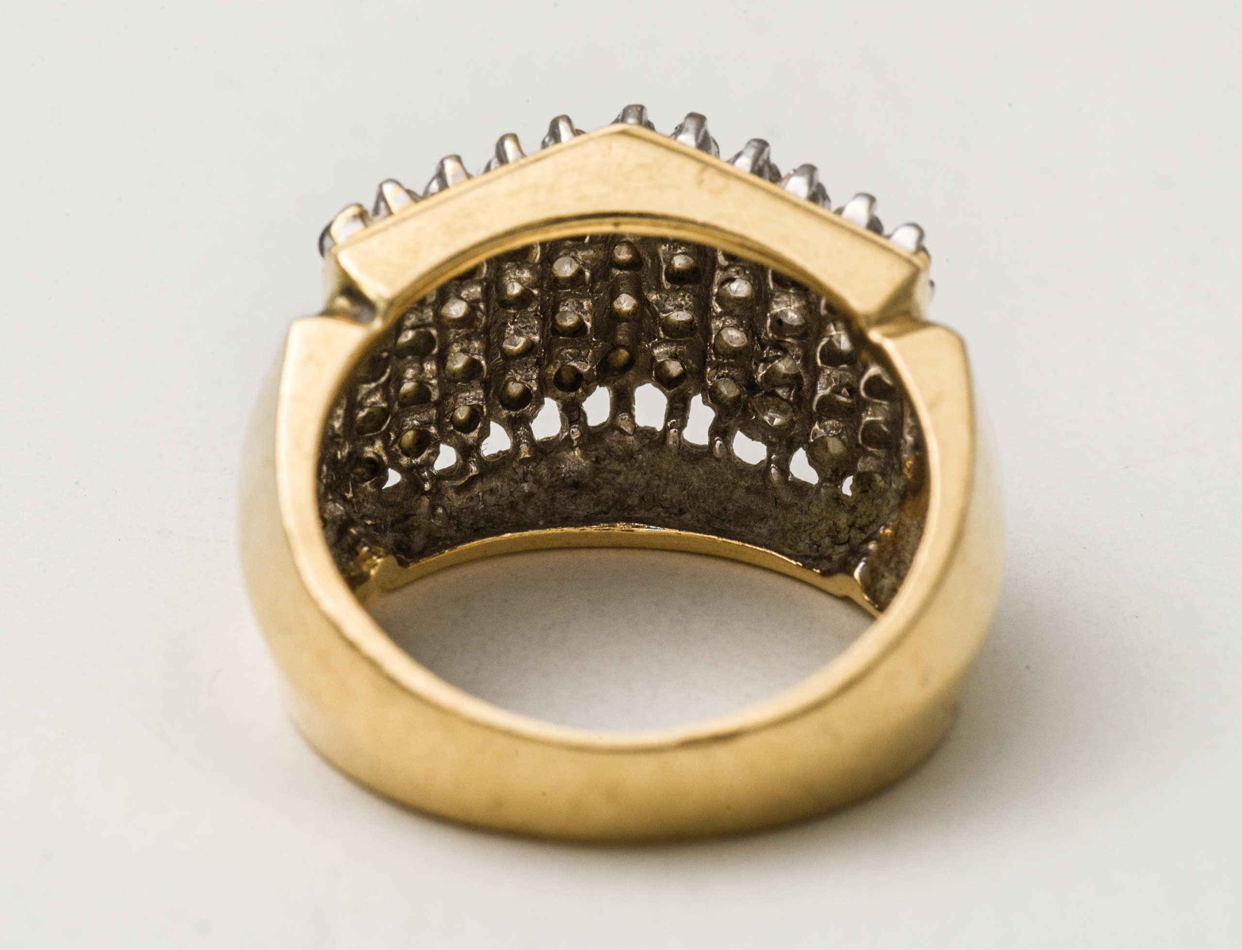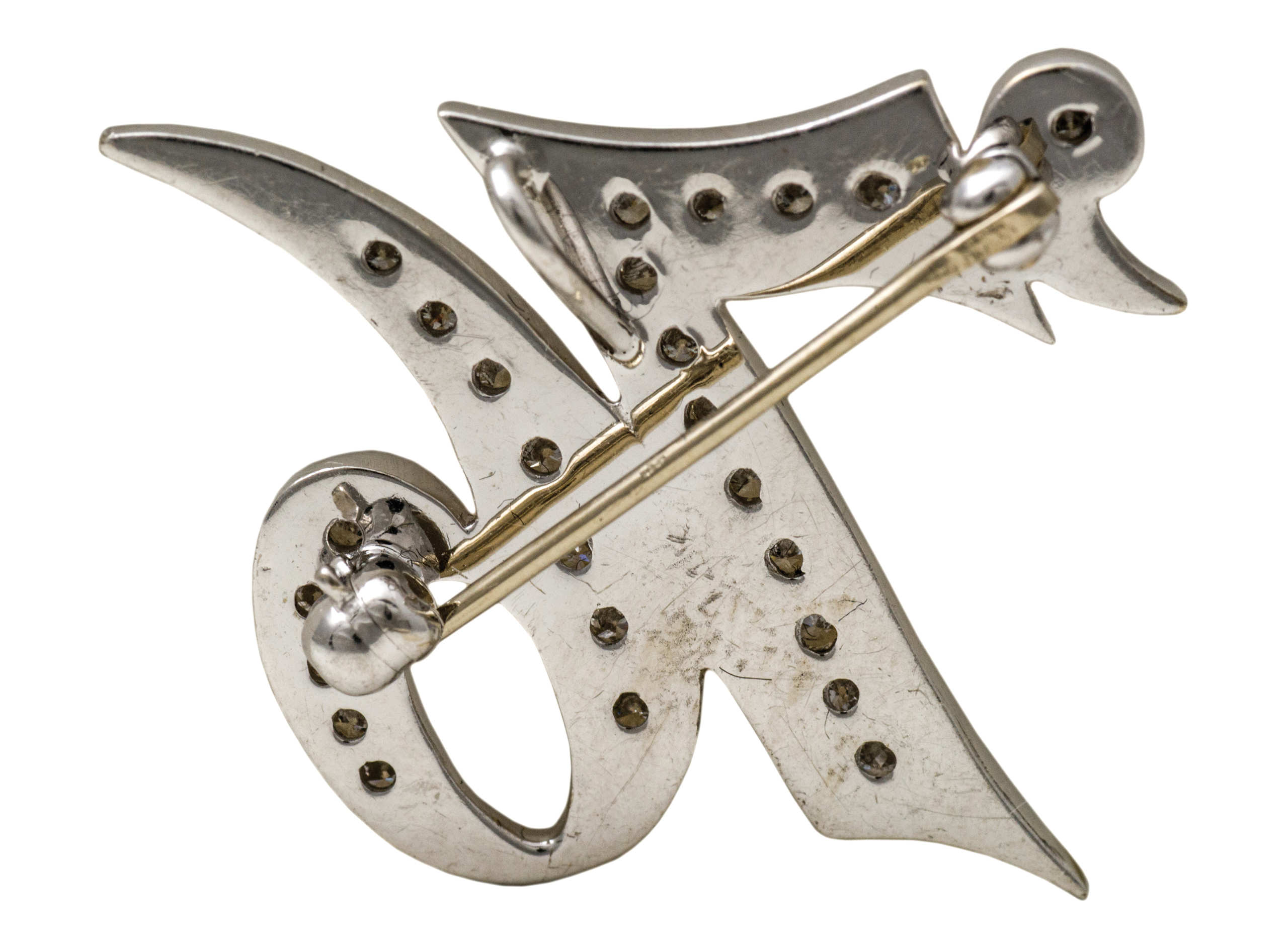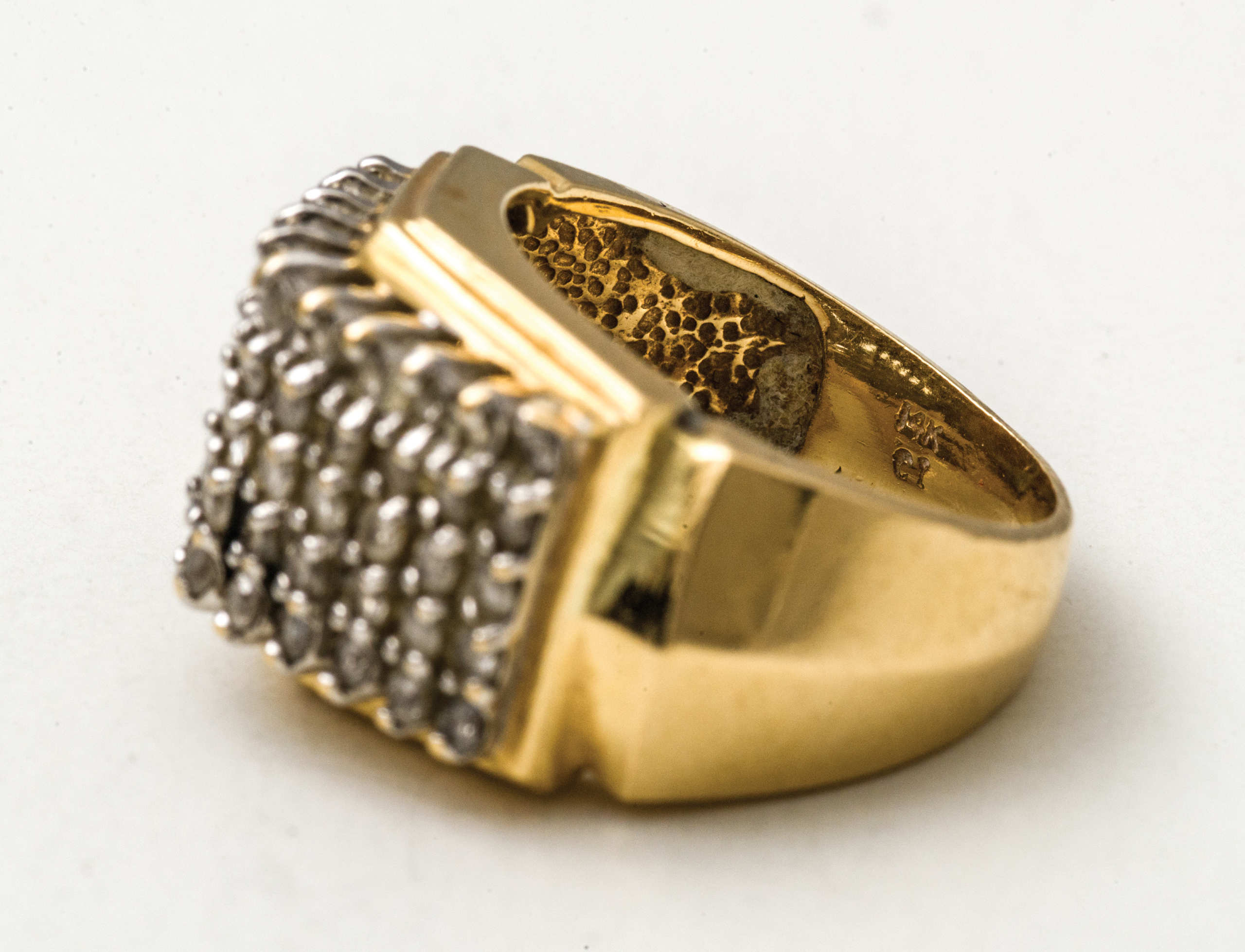 14K gold rings with diamond chips; 14K white gold pin with diamond chips, “’76”.