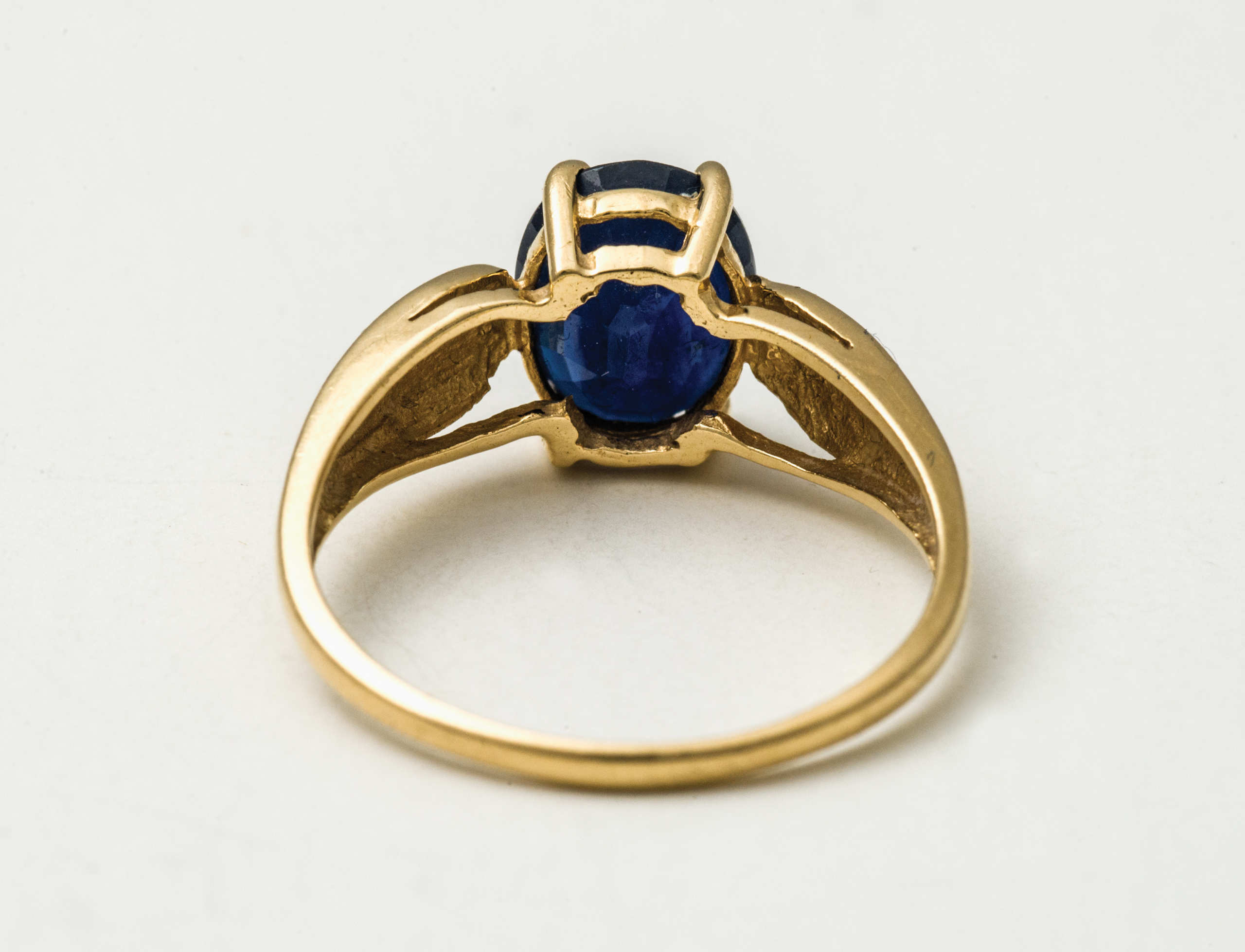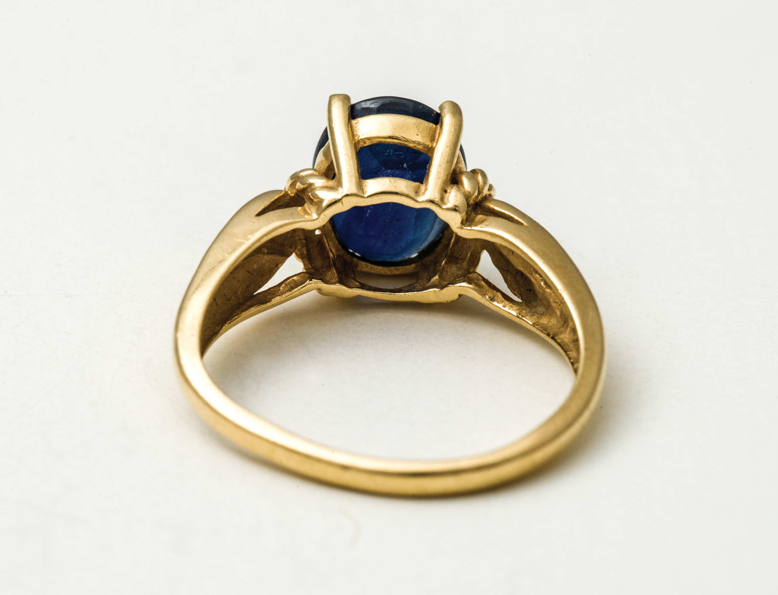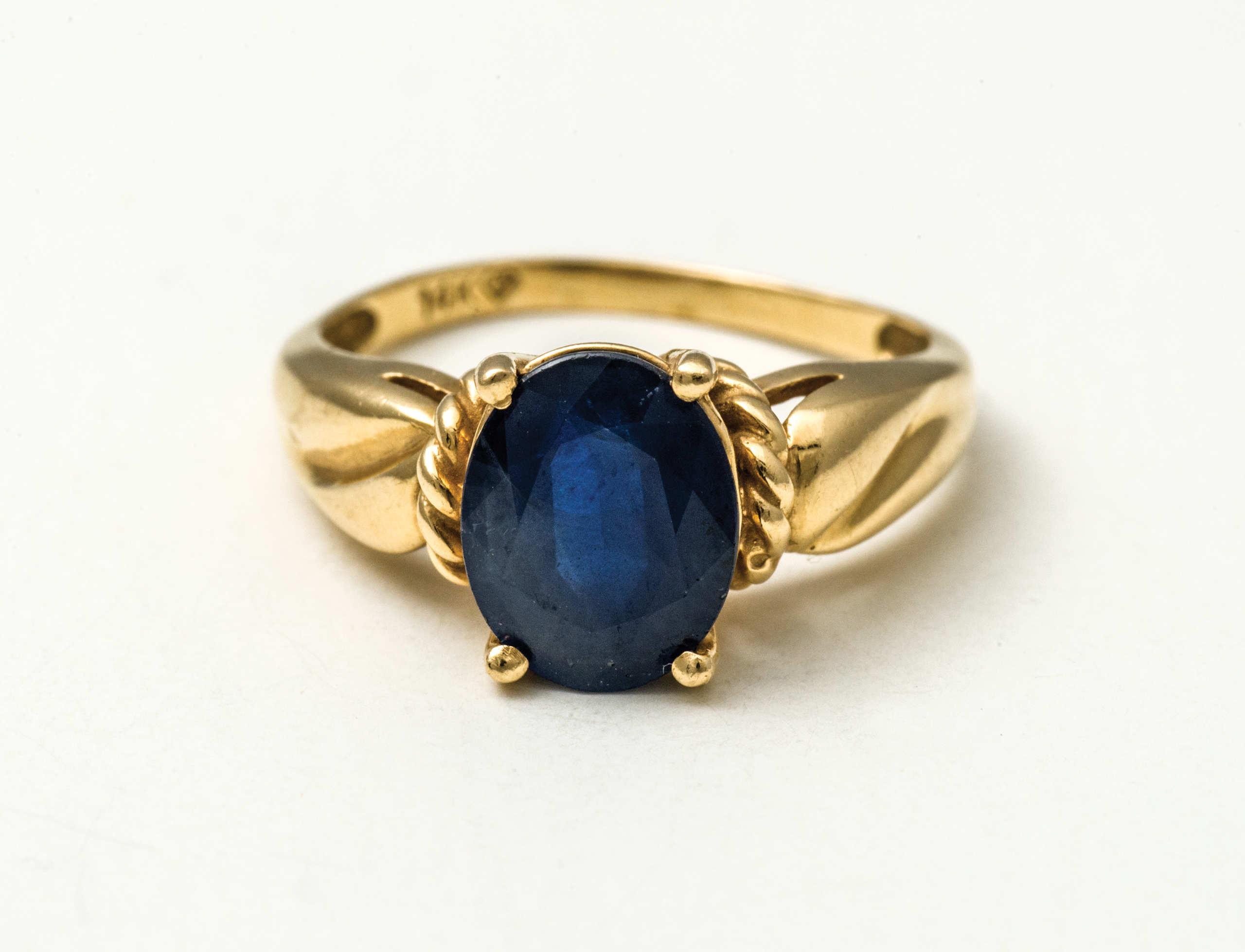 14K gold rings, both with oval cut sapphires, 16.62mm and 17.30mm.