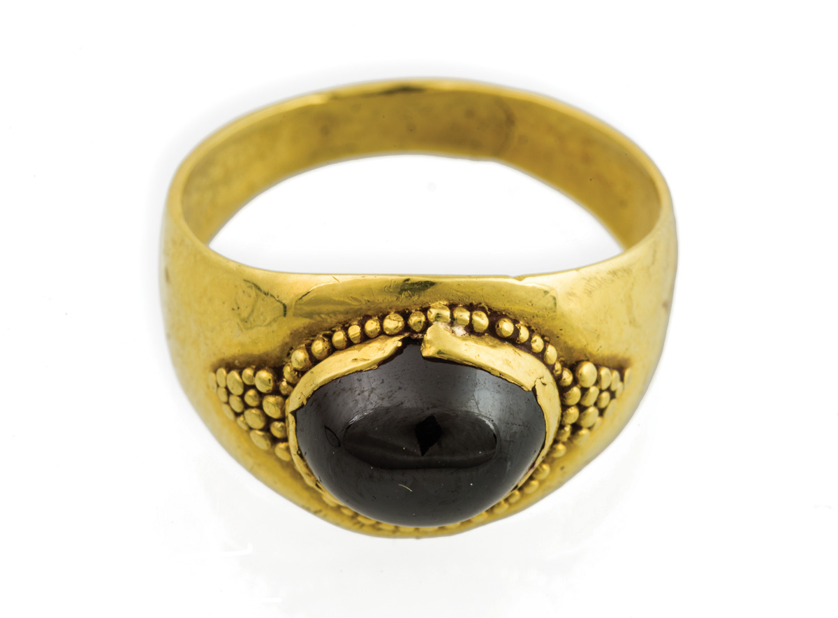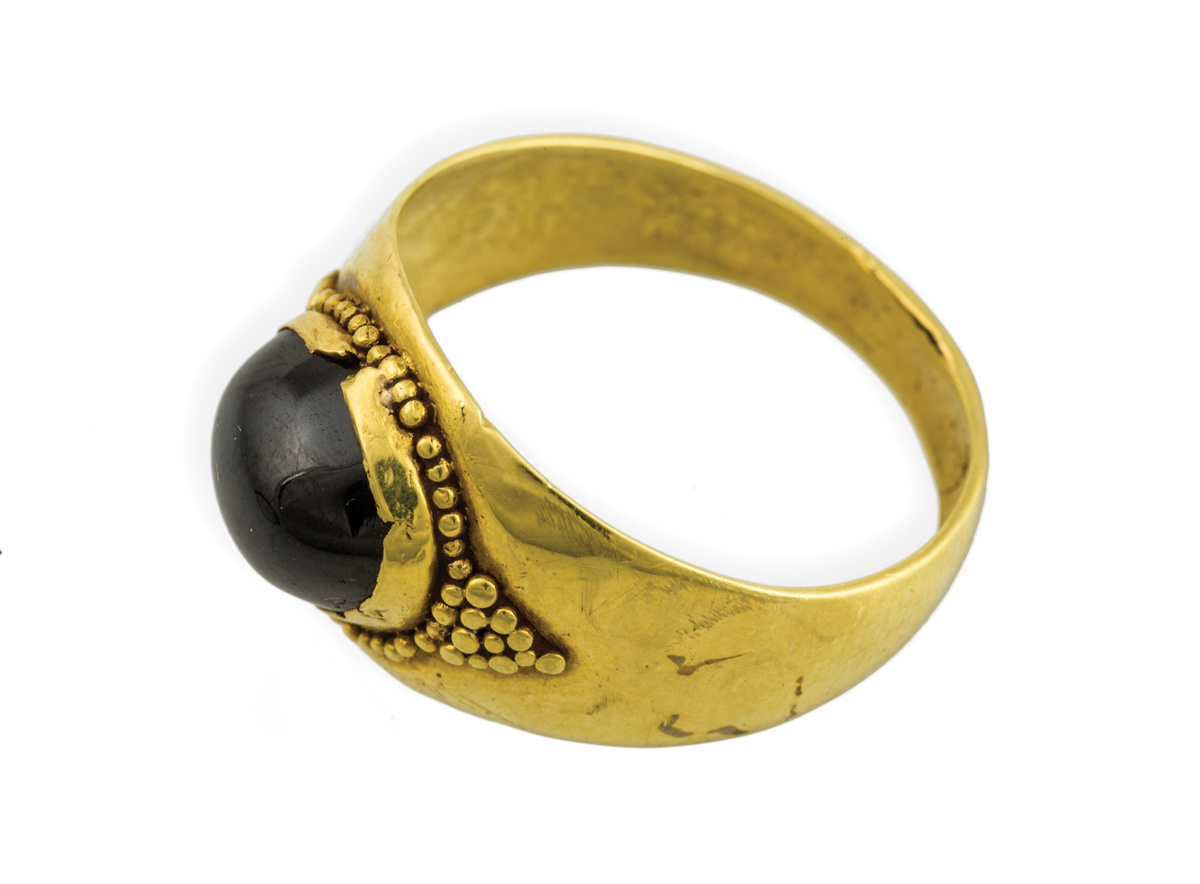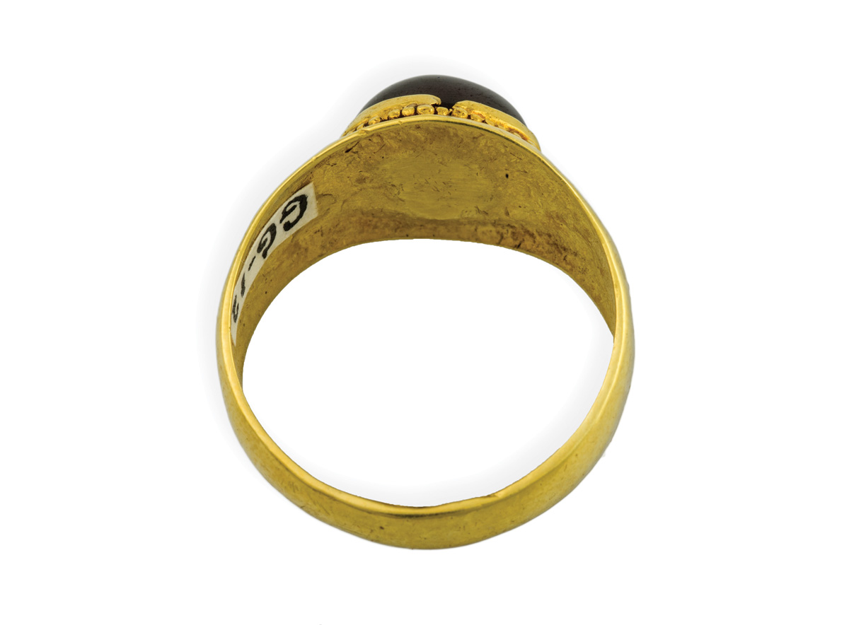 22K gold ring, 1.68 gms with a deep red oval garnet, (5.46 gms), Syro-Roman or Greek, (1st-3rd c. AD ?), size 8 3/4, (L.C. & P. Wyman collection).