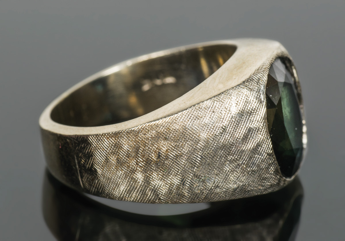 14K white gold ring, with oval mixed cut blue topaz, 9.5mm by 10.5mm, size 6, 10.68 gms overall wt.