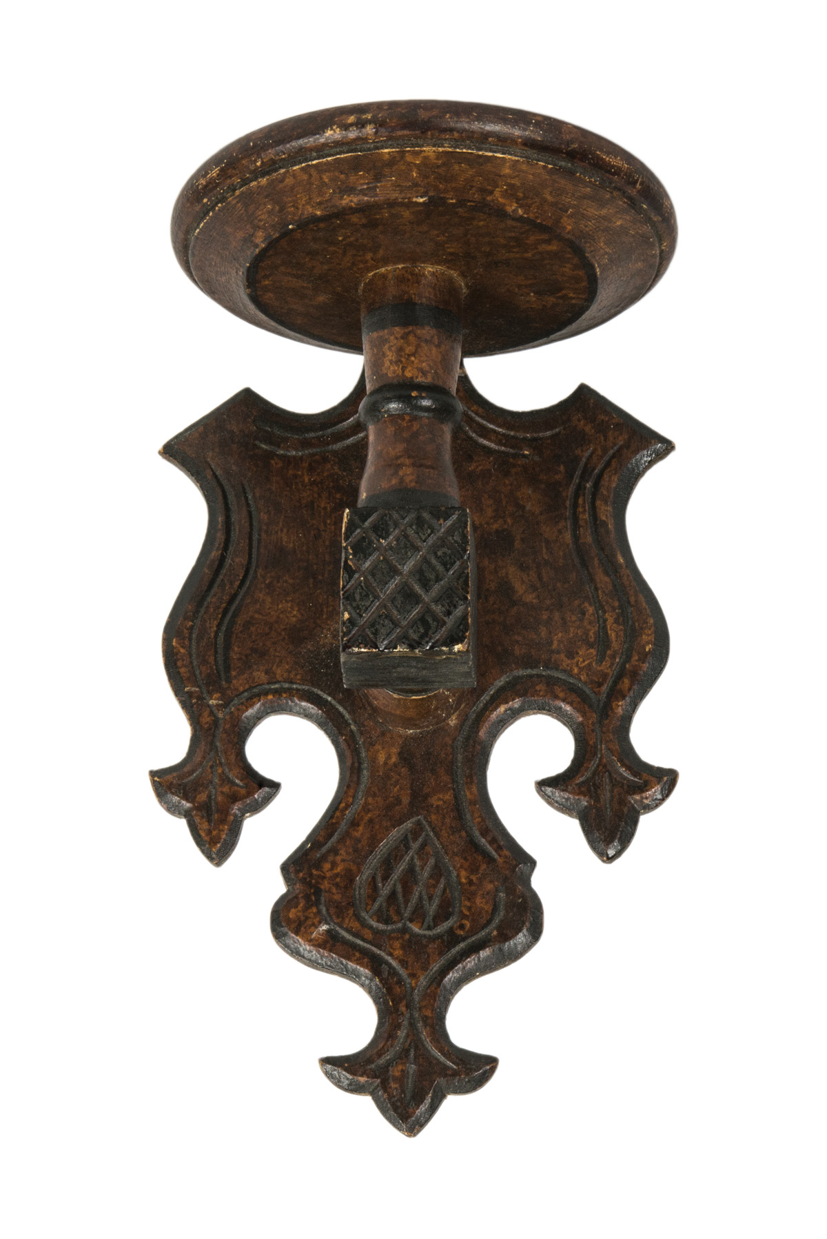 19th c. wooden carved plaque/wall shelf, nicely carved folk art decorations, original finish, 12 3/4″ h, 7 1/2″ w, (ex. Fertig collection).