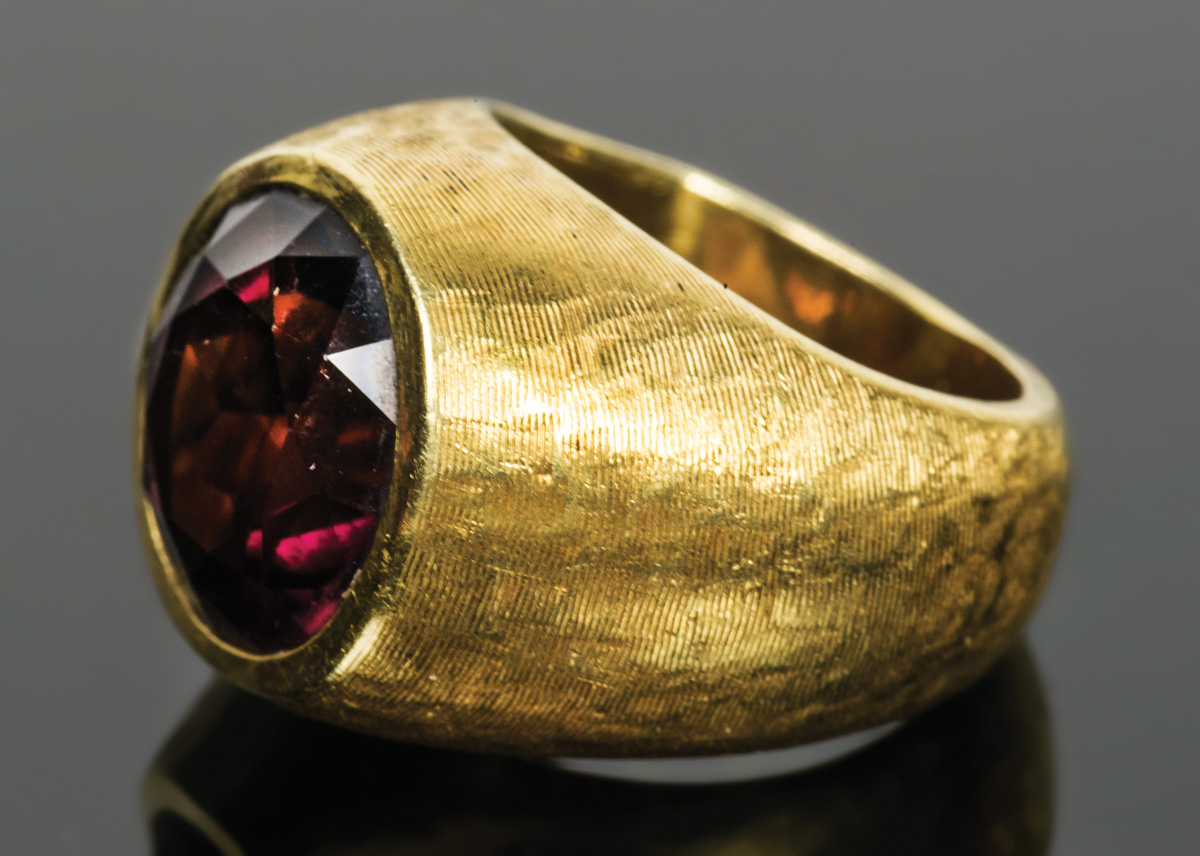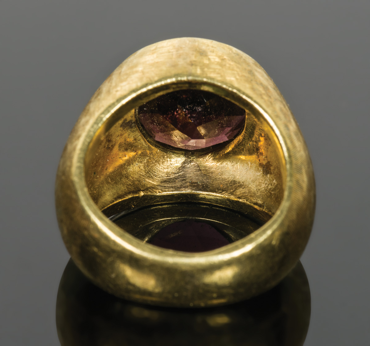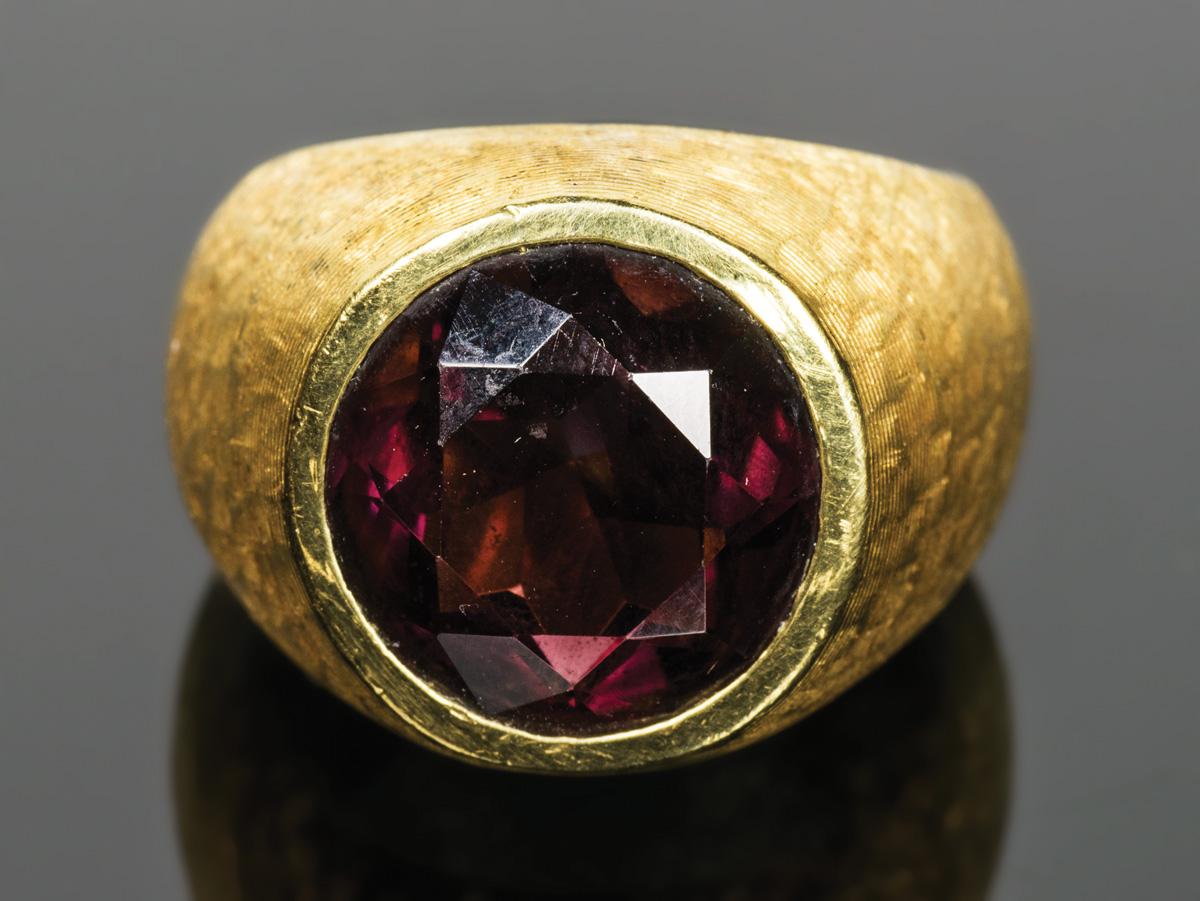 18K yellow gold ring, with round brilliant cut amethyst, 14mm, size 5 3/4, 23.61 gms overall wt.