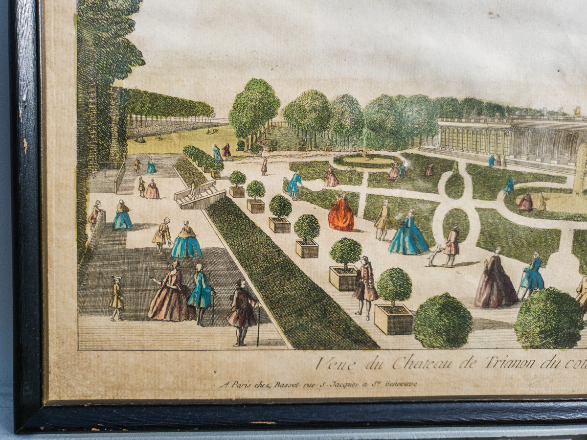 Collection of four 18th and 19th c. framed prints of European formal gardens.