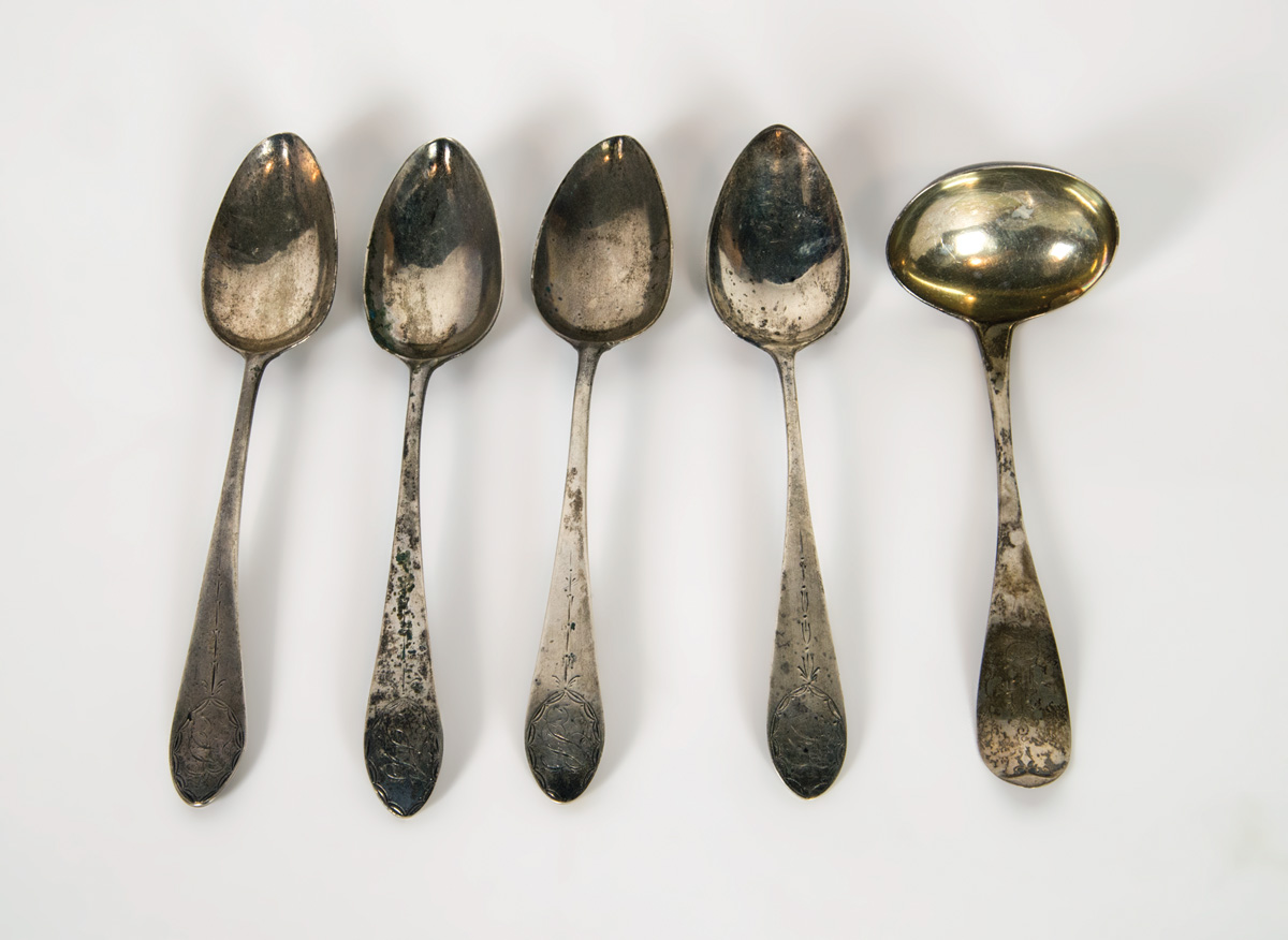 Ten serving spoons, coin and sterling silver, Burger, Christofle, Berg, 23.5 oz t.