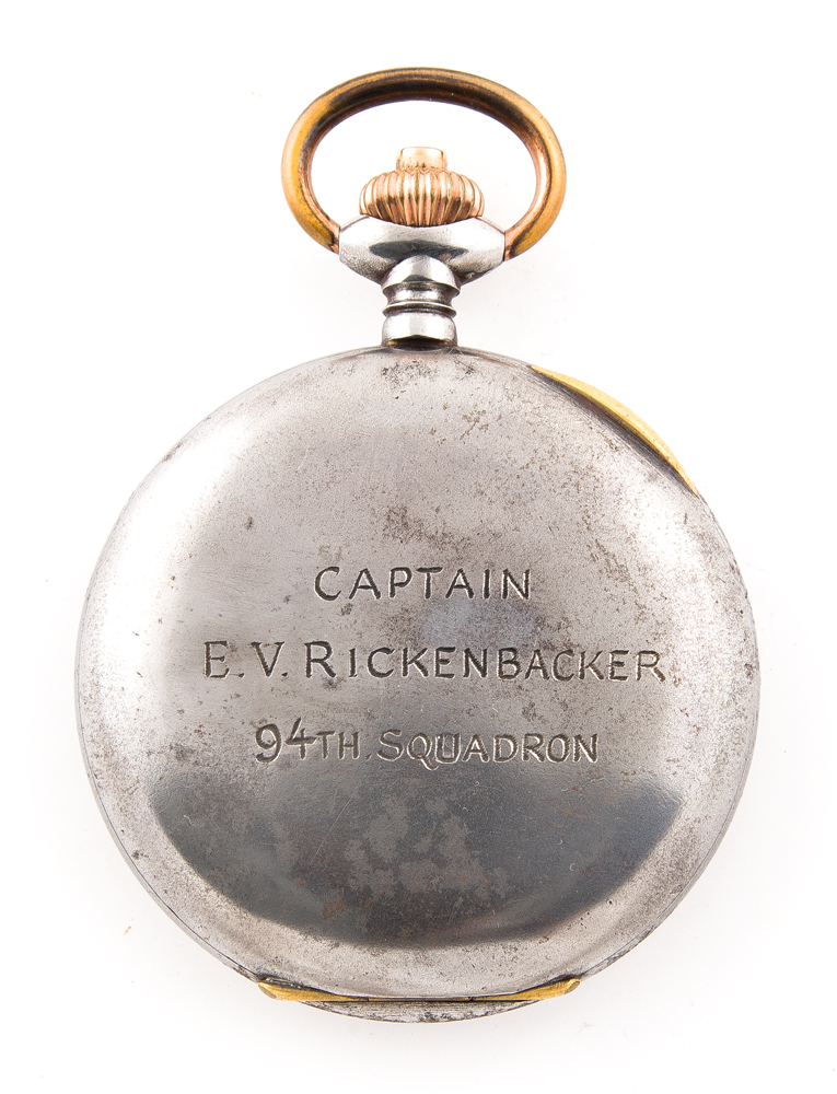 Lot 19: Allion Pocket Chronograph – Engraved “Captain E.V. Rickenbacker, 94th Squadron”