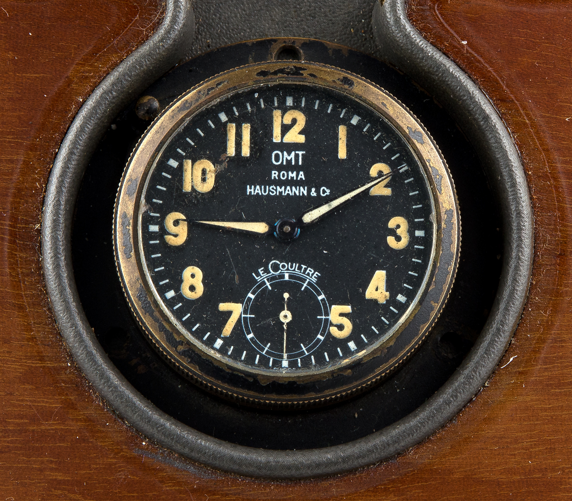 Hausmann & Co-Le Coultre OMT, Airship “Roma.” P26, black painted luminous dial, rim wind, winds and ticks, 42mm case.