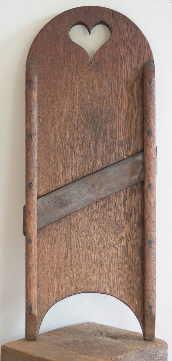 Walnut slicer with heart cutout for hanging, old patina, 20″ l, 7 1/2″ w.