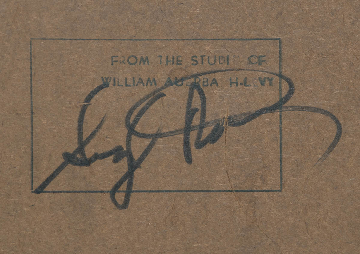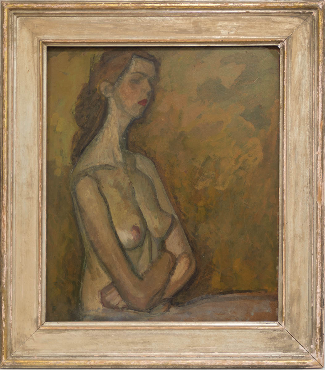 Nude portrait on panel, “From the Studio of William Auerbach H. Levy”, (1889-1964), Skinner tags on back, 24″ x 20″ (sight), 31 1/4″ x 27 1/4″ (frame).