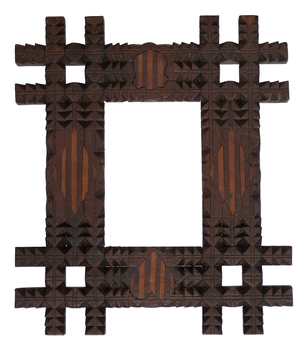 Walnut, with inset heart, diamonds and a shield, old finish, good condition, 14″ h, 12″ w, 6 3/4″ x 4 3/4″ interior.