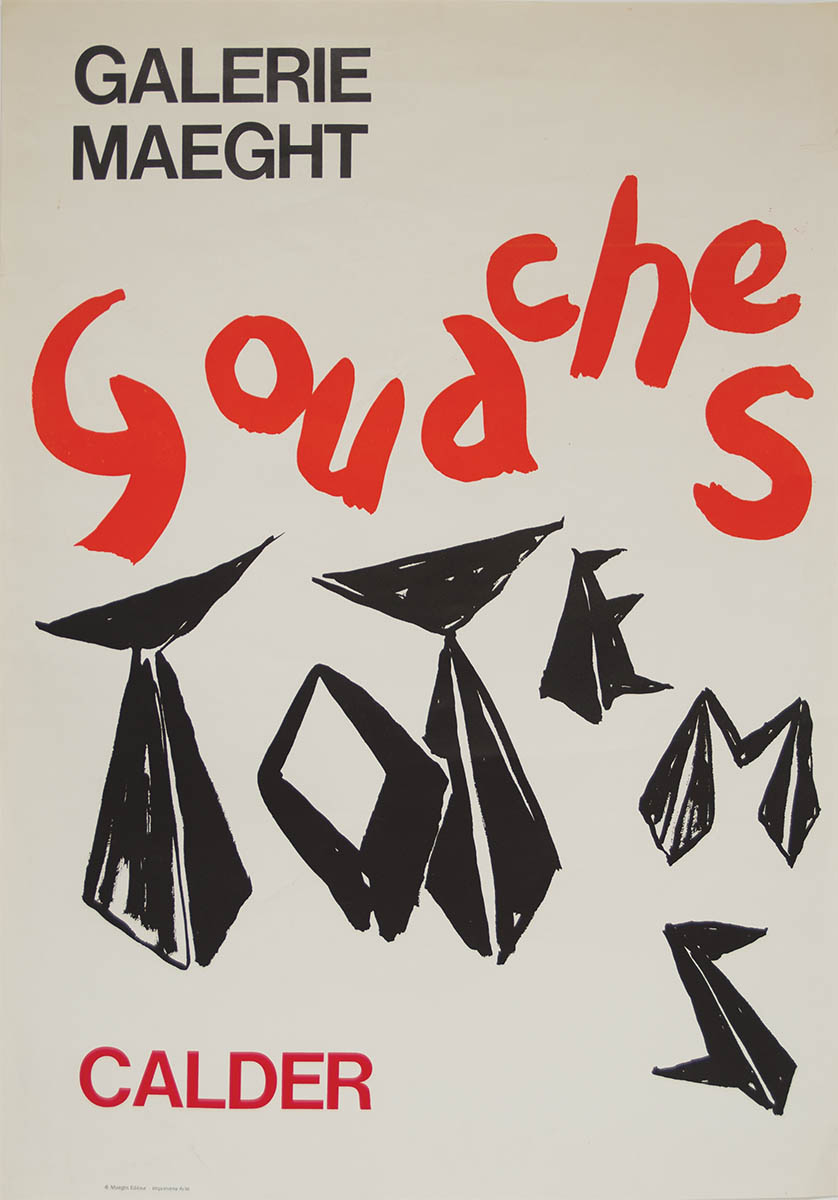 Alexander Calder, (American, 1898-1976), Paris, 1966, “Galerie Maeght”, “Gouches, ToTems”, good condition, 30″ x 21″.