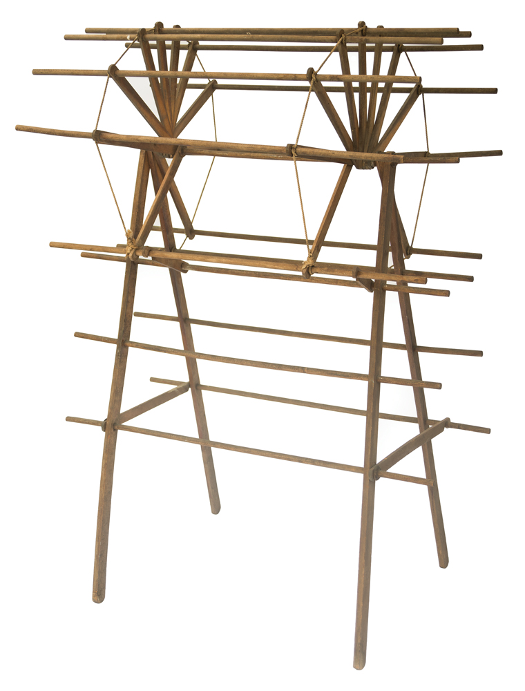 Maple and pine, original natural finish, 10 spokes, 42″ l, folds for storage, ferris wheel form, 59″ h, 26″ d, Watervliet, NY, (see “The Shakers – An Exhibition Concerning Their Furniture, Artifacts and Religion”, Hartford, CT, 1975, #45, for similar example).