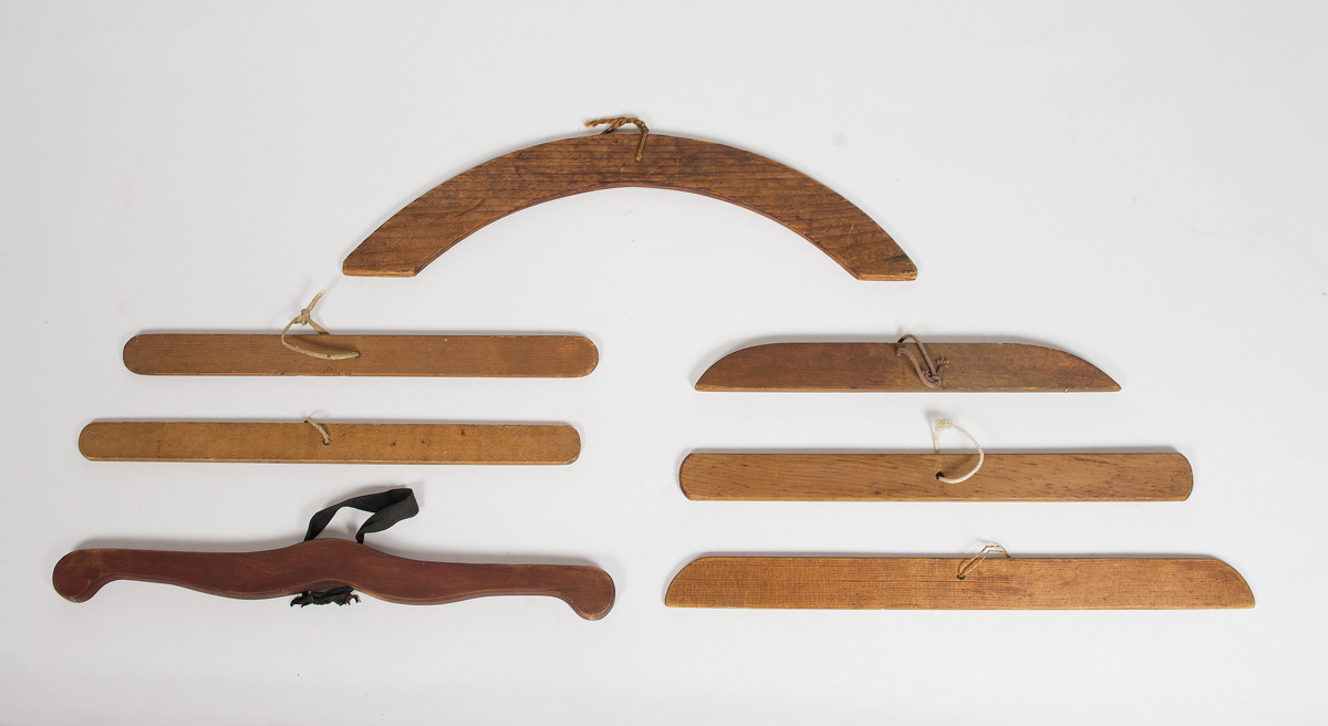 Pine, original natural and stained finishes, most are initialed or signed, 13 1/2″ to 18 1/2″ l, (ex. Faul collection).