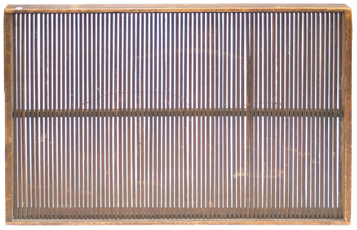 Pine and poplar, natural finish, 75 nailed slats (28” l, 3″ d), 45” l. $300-600