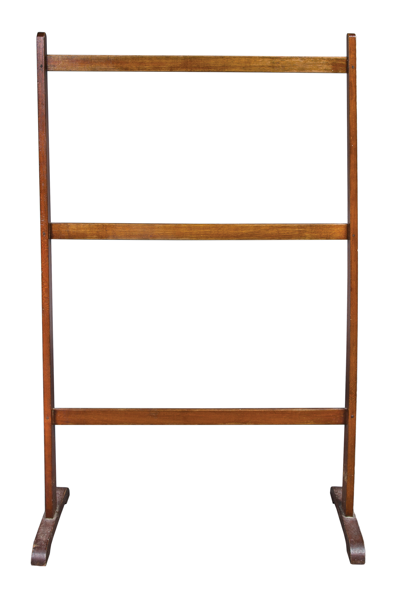Cherry, original varnish finish, three rectangular horizontal bars, through mortised into vertical, tapered, rectangular posts terminating into arched trestle feet, from a Connecticut collection, c. 1850, 32 1/2″ h, 20 1/2″ w, 8 1/2″ w (feet).