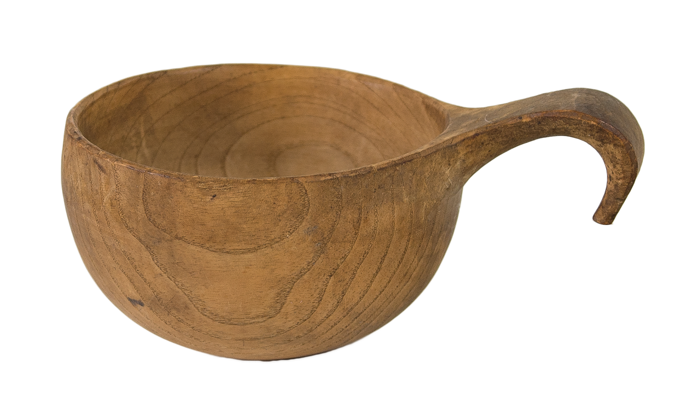 Chestnut, turned bowl with carved handle (made from one piece of wood), natural patinated finish, Hancock, MA, c. 1850, (note: these are quite rare and this particular dipper is a very fine example), 3 3/4″ dia, 5 3/4″ l.
