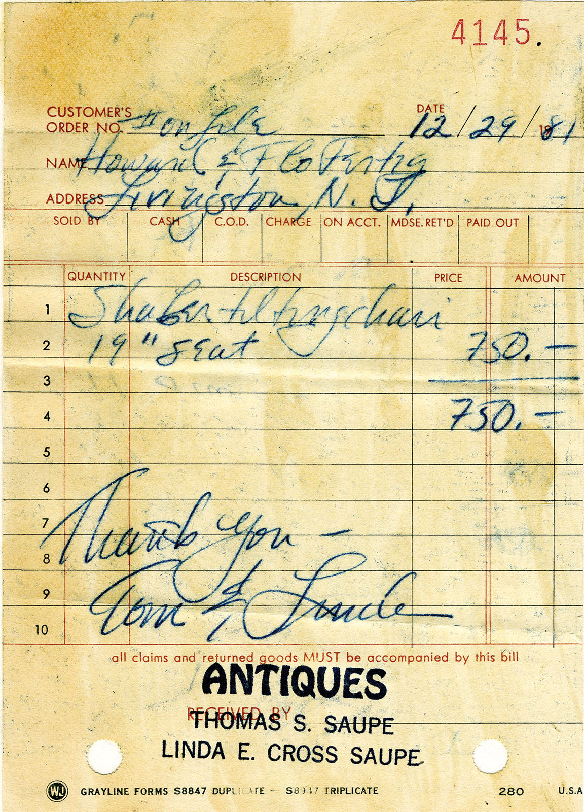 SOLD: $3,400 (without buyer’s premium)