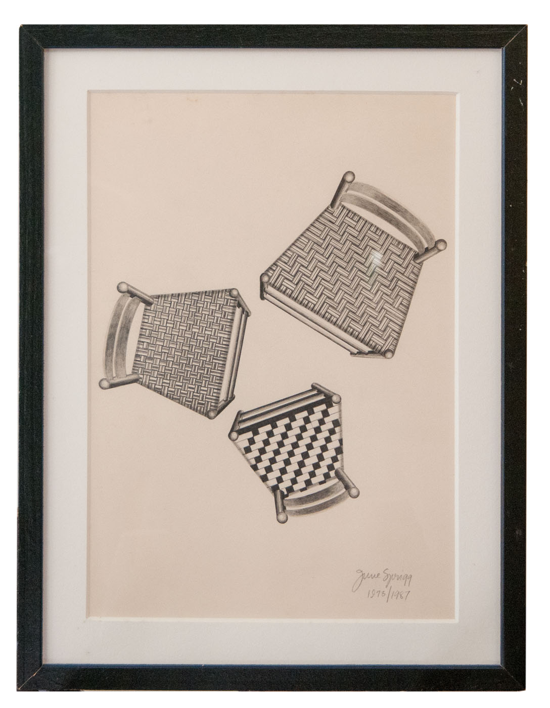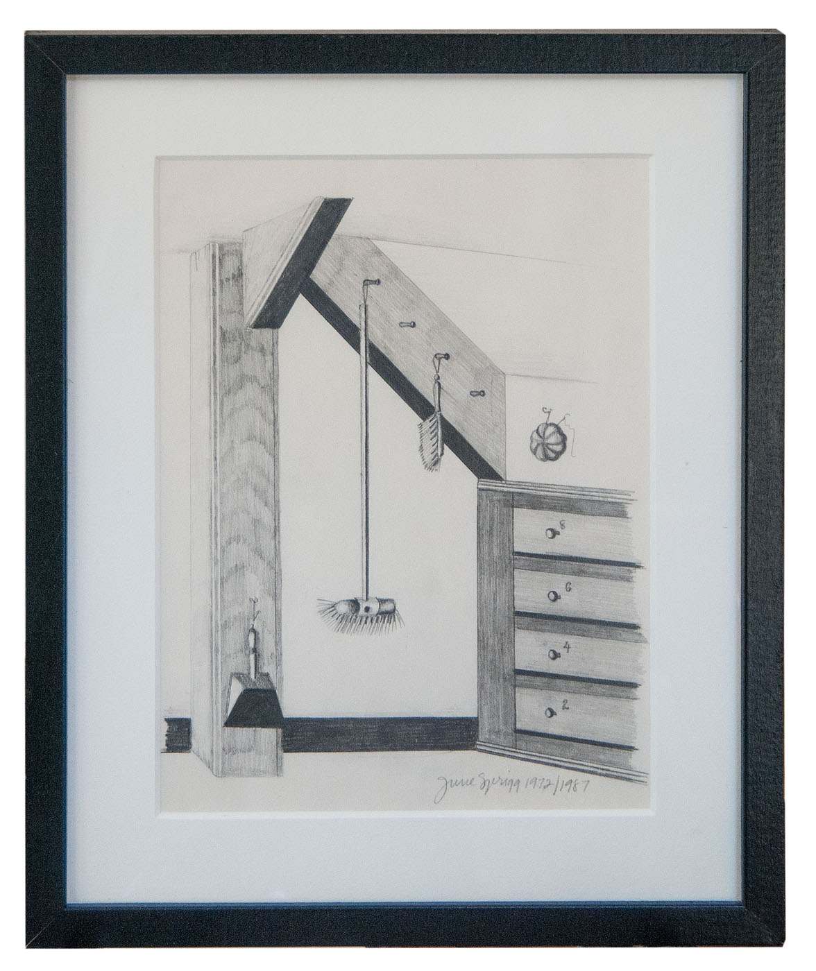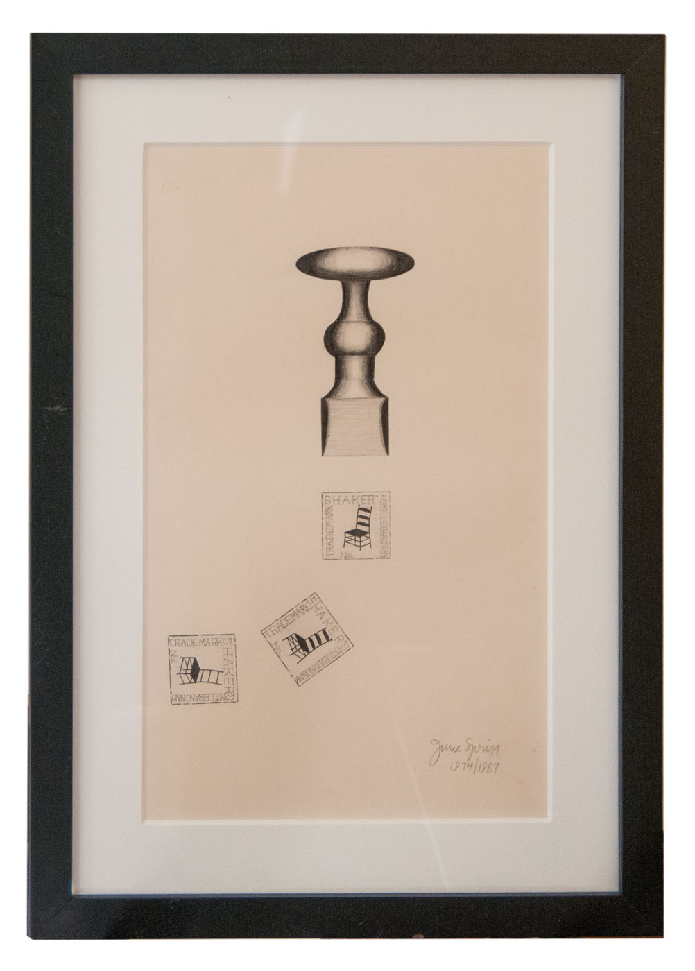 Original artist illustrations for By Shaker Hands by June Sprigg, 1975, Alfred A. Knopf Inc., NY, framed and matted, five of the drawings are artist signed and dated, measuring 7″ x 5″ to 10″ x 7″ (sight).