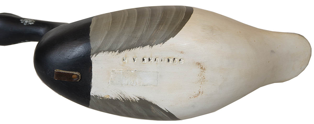 Stamped on bottom “H.V. Shourds”, inset weight, 7″ h, 19″ l.