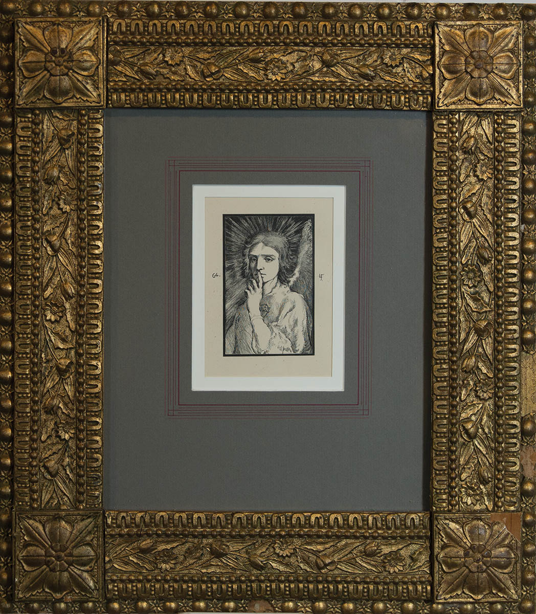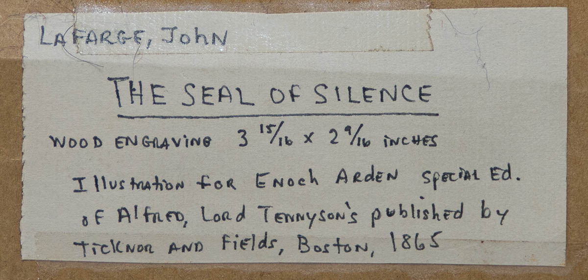 “The Seal of Silence”, illustrated for Enoch Arden, special ed. of Alfred Lord Tennyson’s, published by Tichnor and Fields, Boston, 1865, John La Farge (1835-1910, American), framed and glazed, Belknap collection.